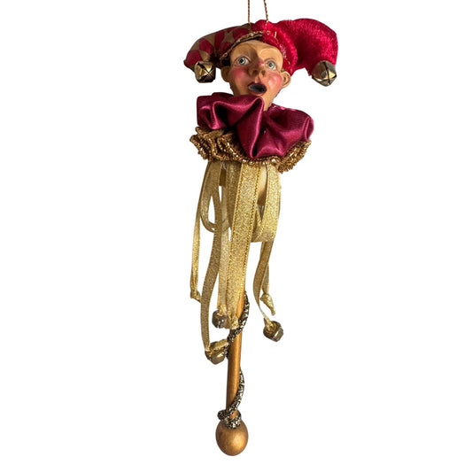 Mark Roberts Jester Harlequin Ornament Red Gold Bells Wand 9"