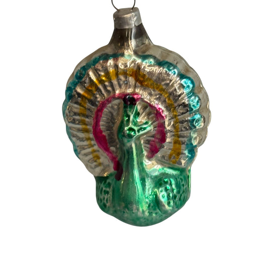 Vintage German Molded Peacock Figural Glass Christmas Ornament 2 1/3" x 1 3/4"