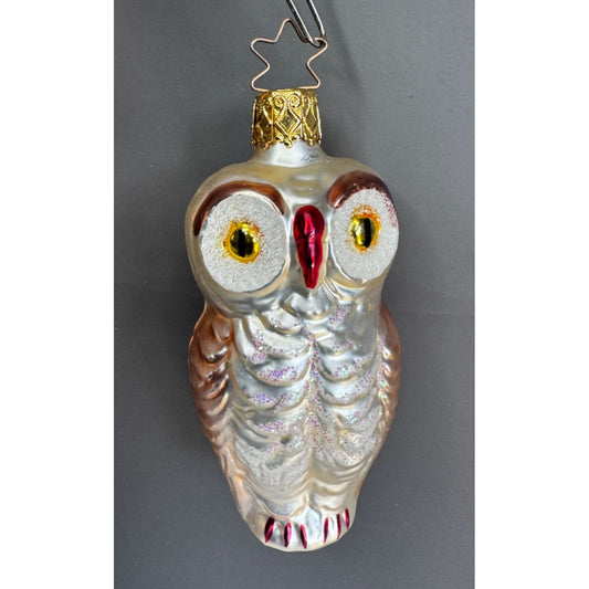 Inge-Glas Owl Ornament Pearlized Glitter Glass 4 Inch Germany