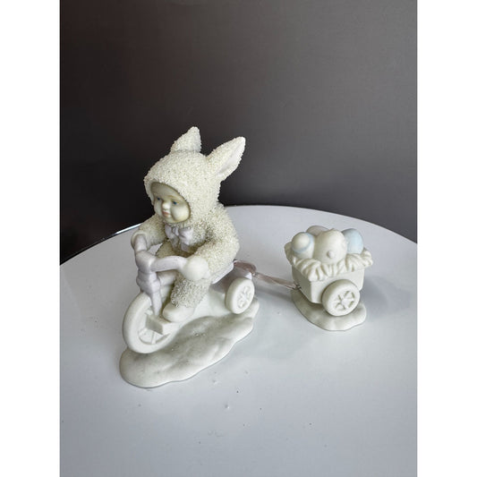 pt 56 Snowbabies Riding Tricycle Pulling Easter Egg Cart 1997 Figurine