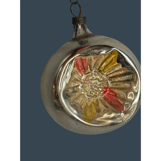 Antique German Silvered Ornament Reflector Flower Glass 2 1/2" x 2 1/4"