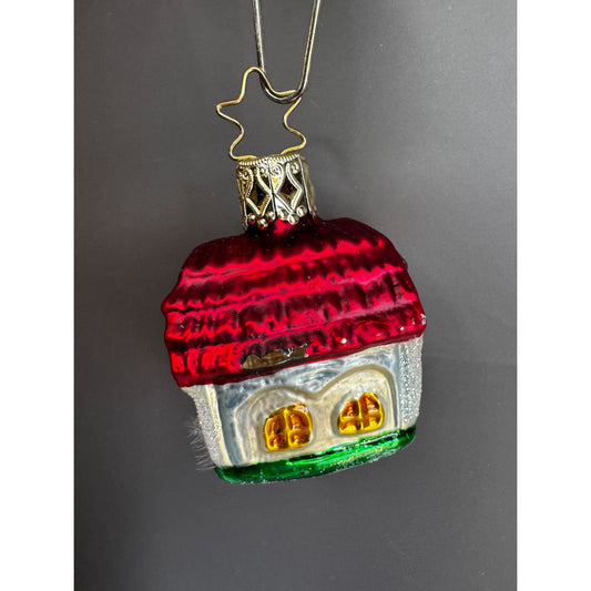 Inge-Glass Mini Cottage Ornament Red Roof Gold Windows 1.5" Germany