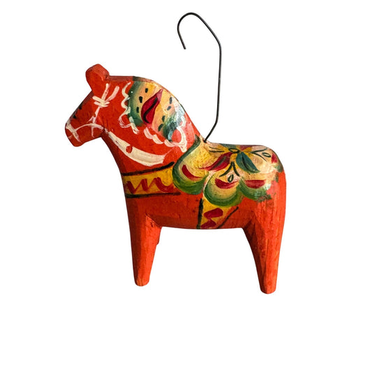 Vintage Swedish Dala Horse Ornament Red Folk Art Hand Painted 2 3/4"