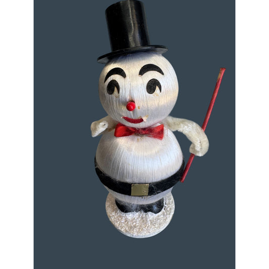Vintage Japan Snowman Satin Body Felt Face Chenille Arms 39 Cent Sticker 6 1/2"
