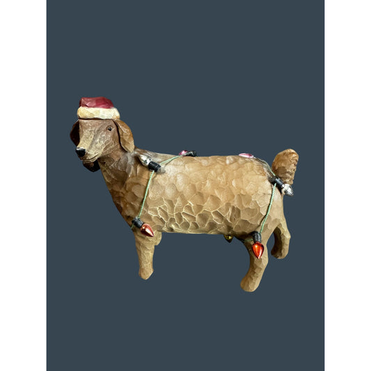 Primitive Carved Wood Look Sheep Christmas Figure Santa Hat Lights 4"