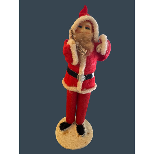 Vintage Japan Santa Claus Figure Spun Cotton Beard Paper Mache Candle Flocked 7"