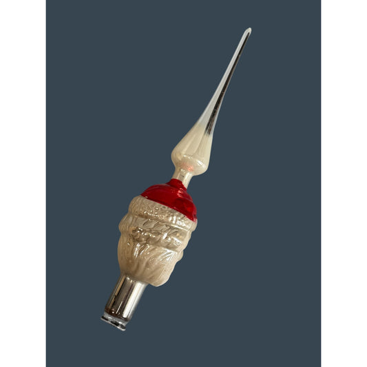 Vintage Glass Santa Head Tree Topper Silver Finial Red White Blue Eyes 9.5"