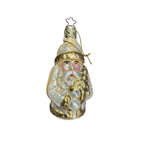 Inge-Glas Germany Classic Pearlized Father Christmas Glass Ornament Gold 4" Retired