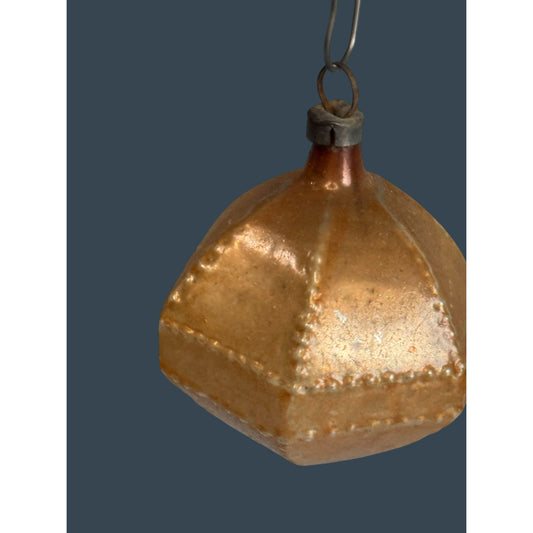 Antique German Christmas Faceted Octagon Blown Glass Ornament Gold 2 1/2"