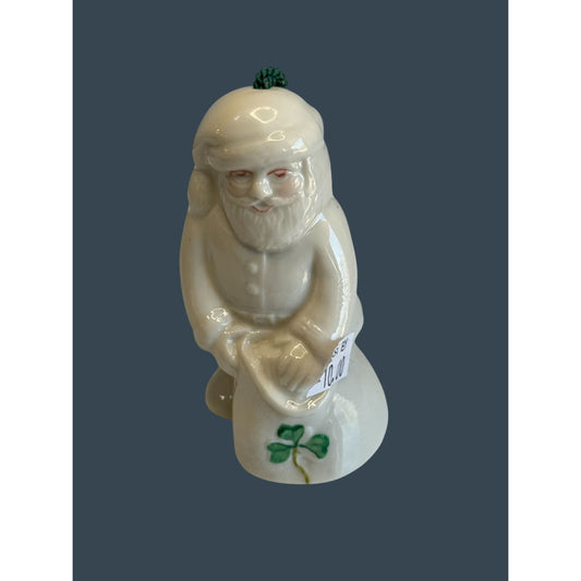 Belleek Santa Toy Bag Ornament Bell White Porcelain Shamrock 4.5" Ireland