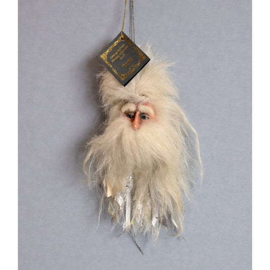 Marci Wolfe Father Frost Folk Art Santa Head Ornament Glass Eyes Spun Cotton Rare
