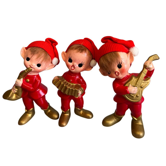 Vintage Inarco Japan Christmas Elf Figurines Set 3 Musicians 4 1/2"