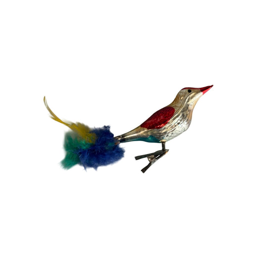 Vintage German Glass Clip-On Songbird Ornament Feather Tail Multicolor 6 Inch