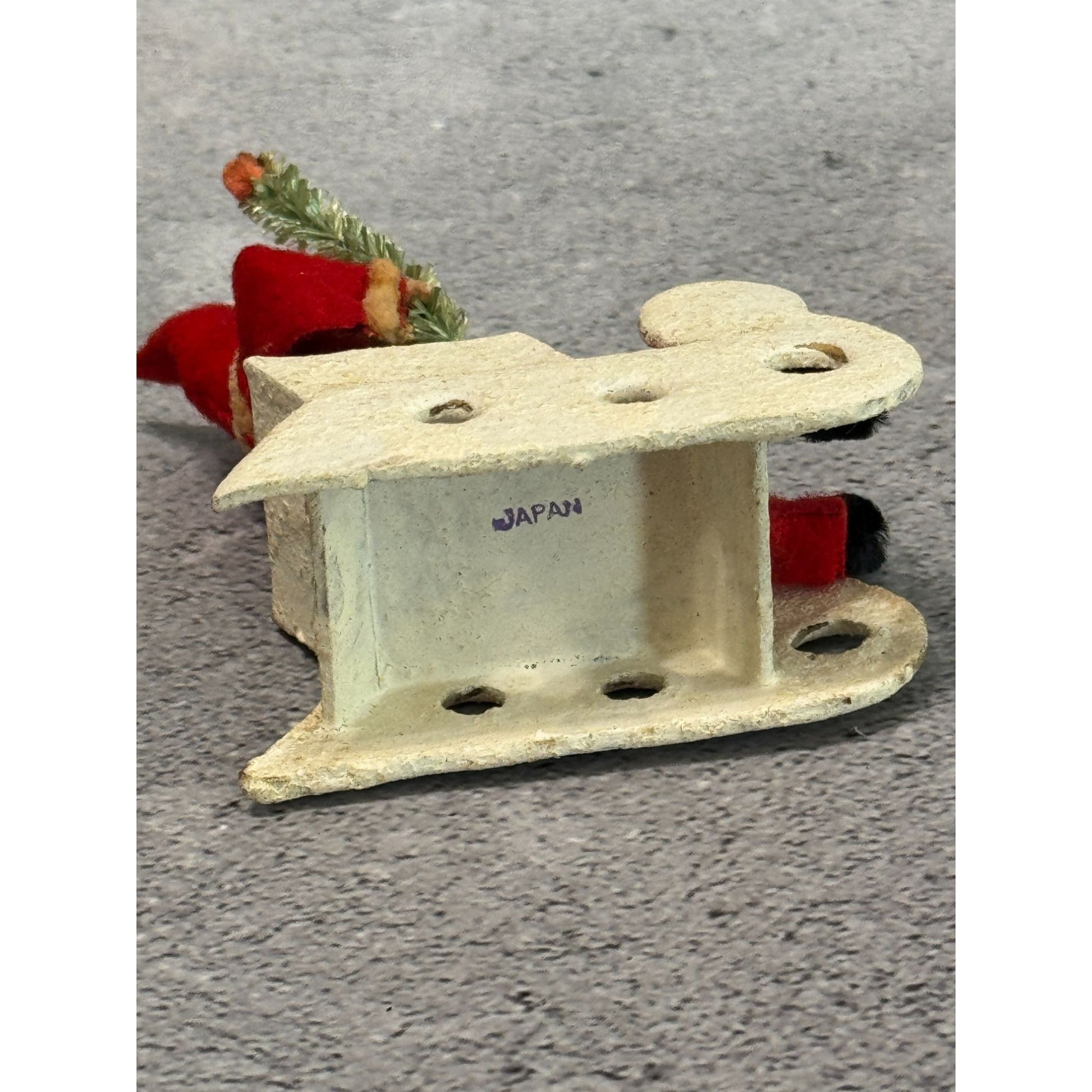 Antique 1930s Japan Santa Cardboard Sleigh Molded Composition Face Brush Tree
