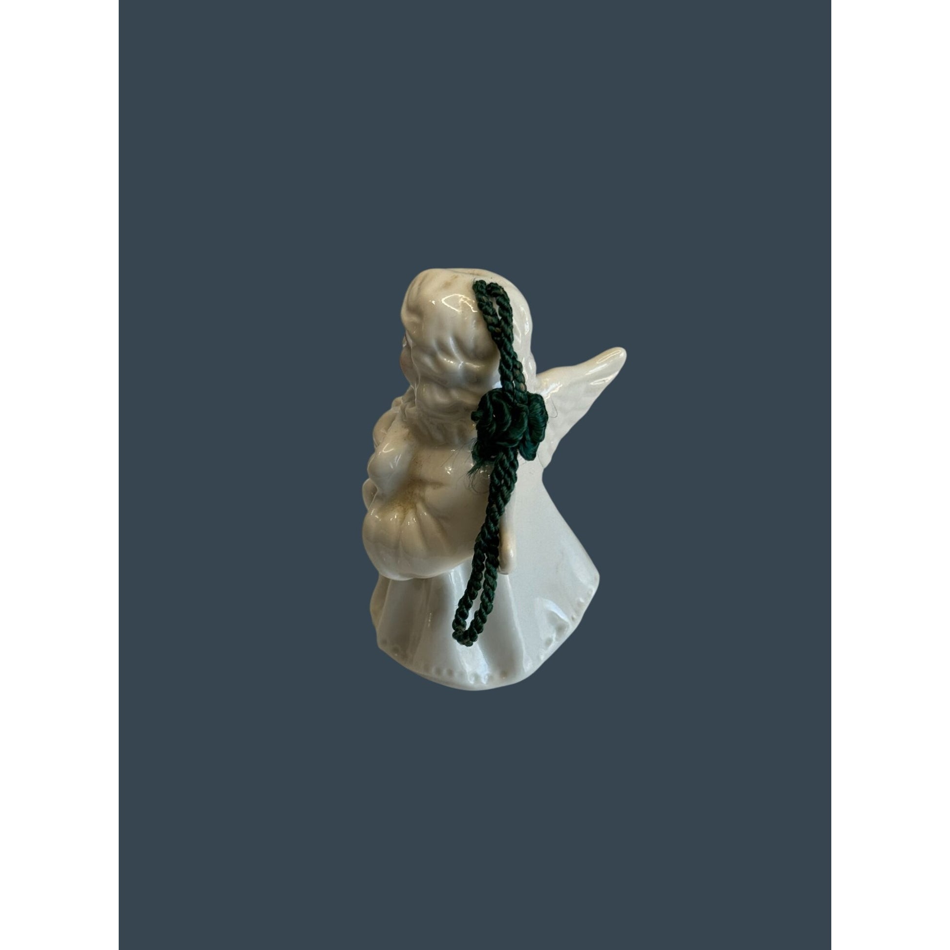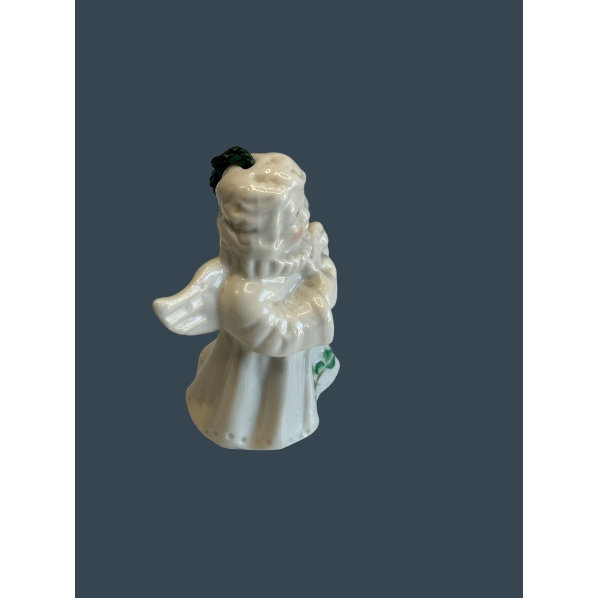 Belleek Angel Bell Ornament White Porcelain Shamrock Green Cord 4.5" Ireland