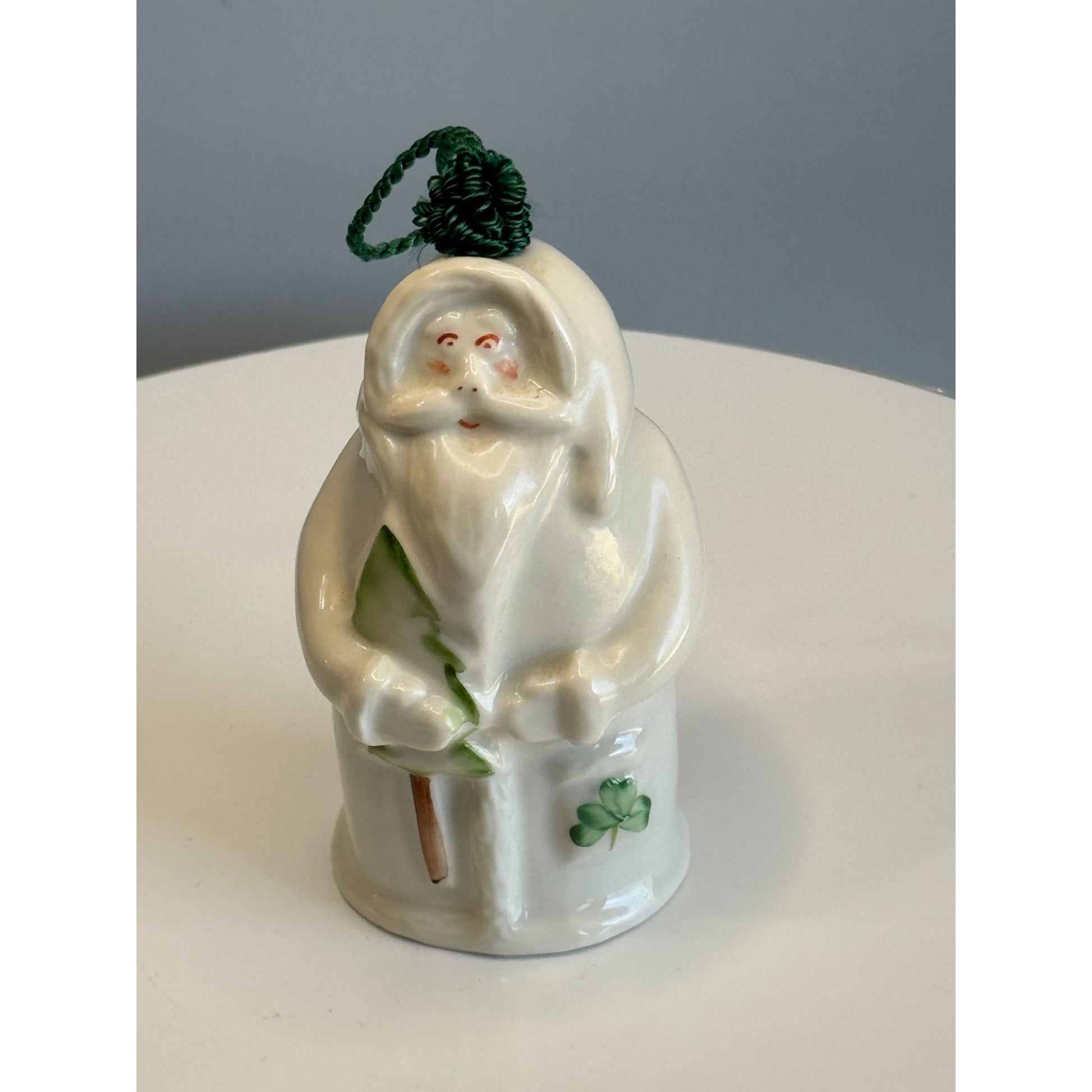 Belleek Santa Ornament Bell White Porcelain Shamrock Green Cord 4.5" Ireland