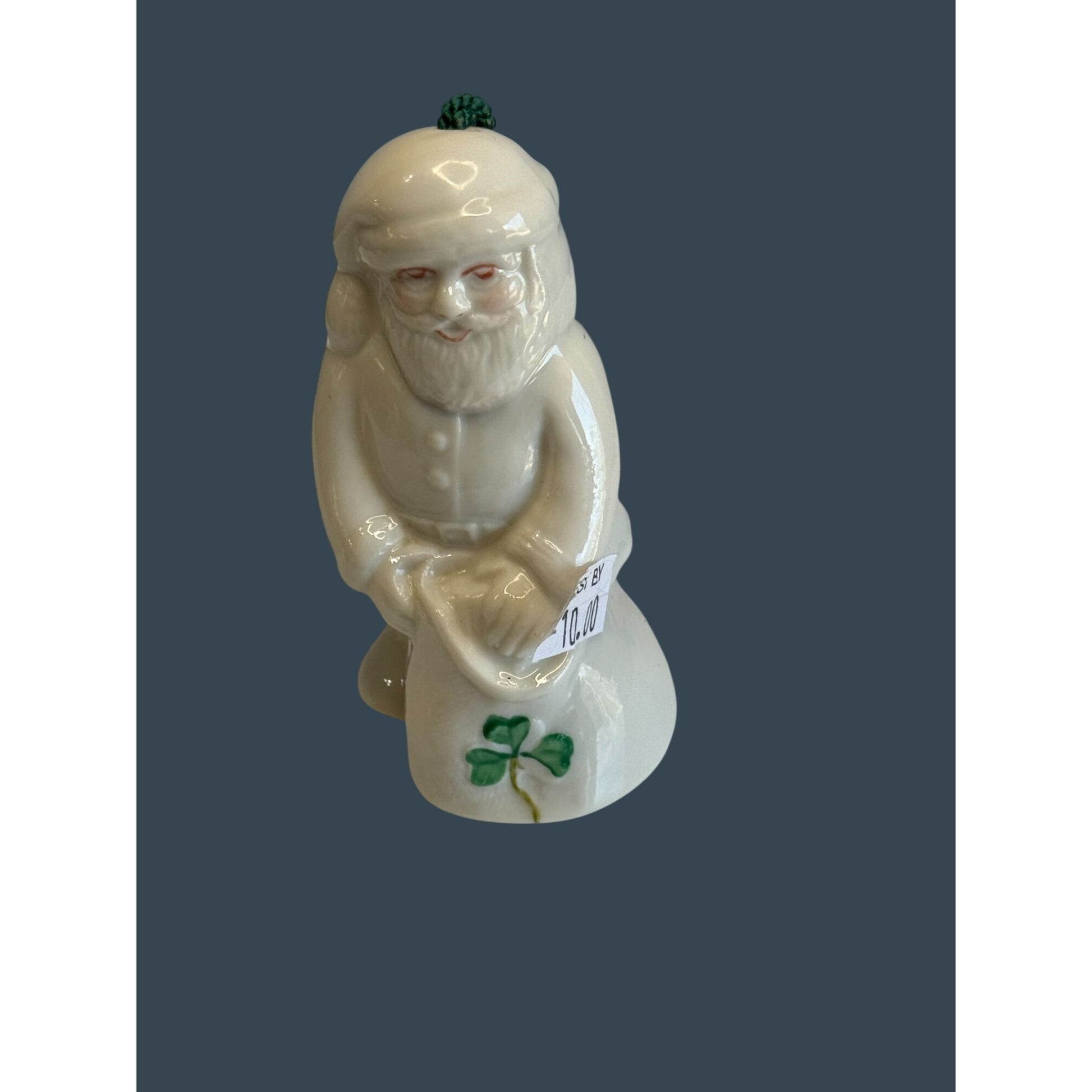 Belleek Santa Toy Bag Ornament Bell White Porcelain Shamrock 4.5" Ireland