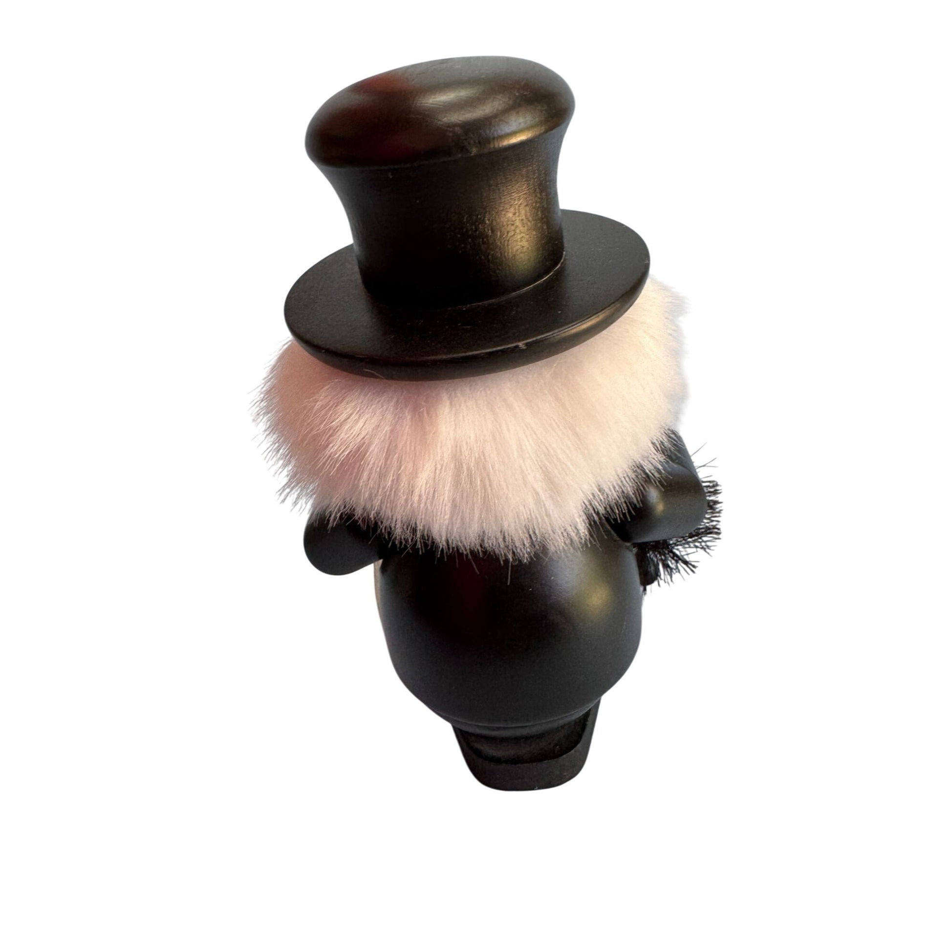 Hand-carved and painted wood, with felt/faux fur beard and mustache