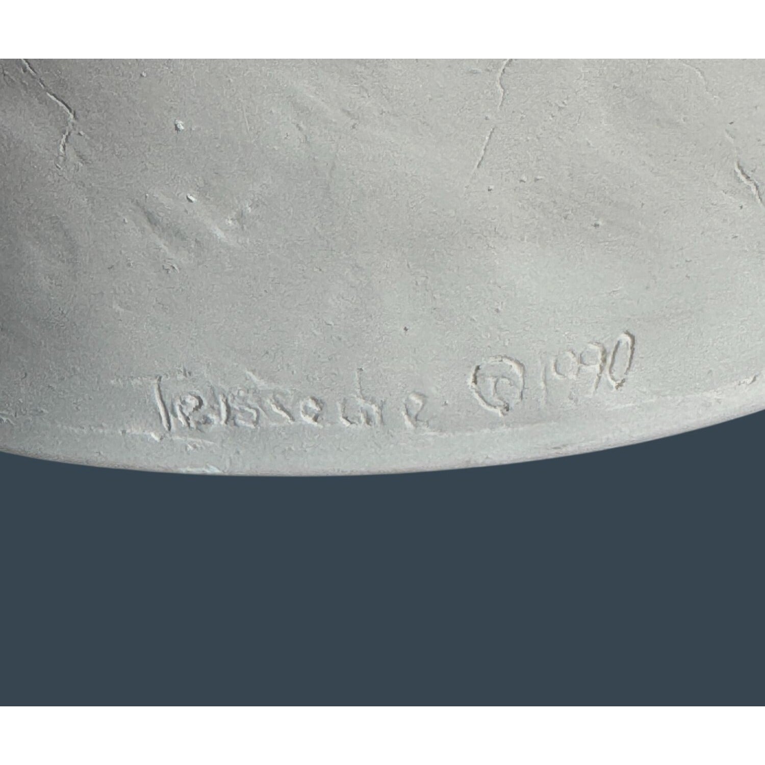 markings: etched signature “Cleo Teissedre 1990” on back; figures marked MHS; base marked MW