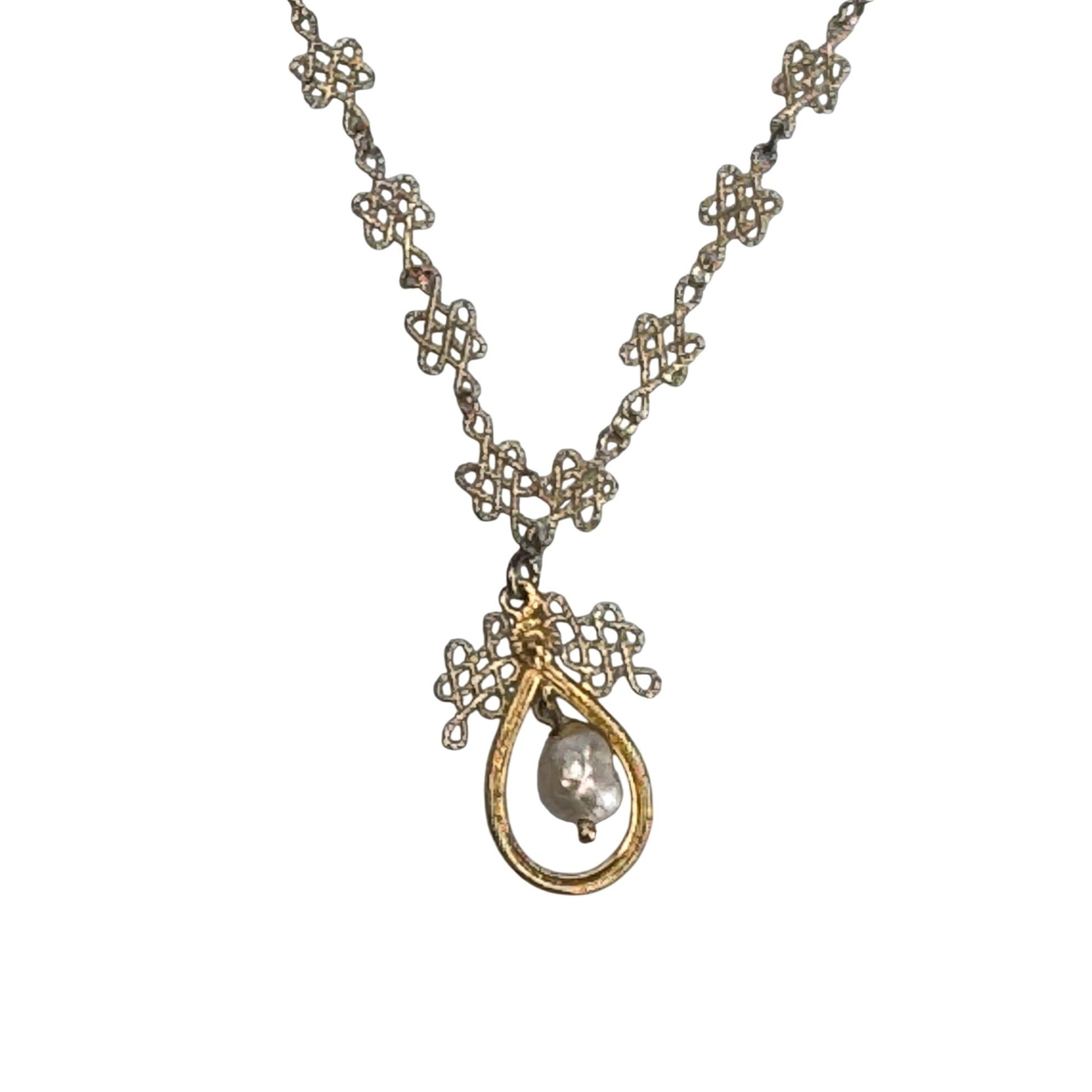 Franklin Mint 22K GEP Sterling Silver Necklace with Baroque Cultured Pearls 17"