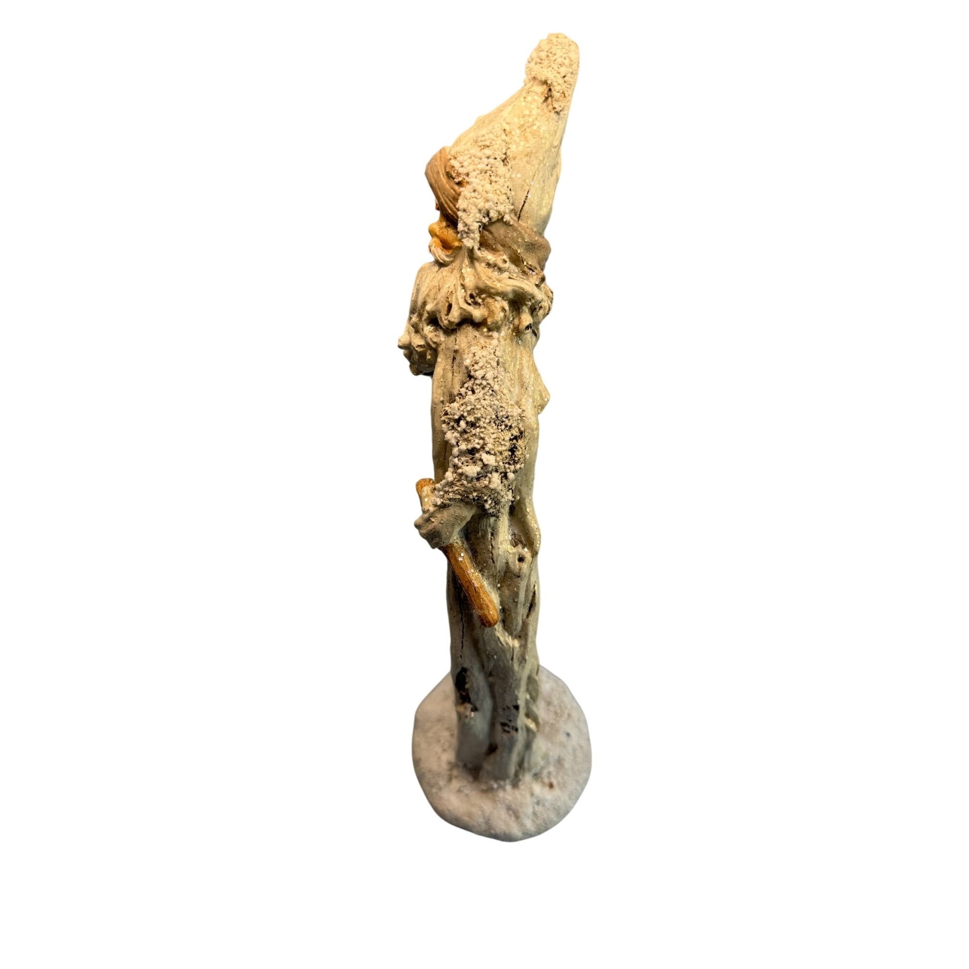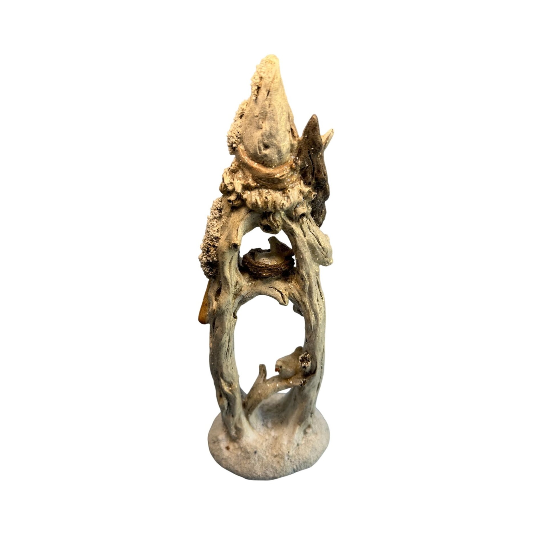 This Ganz Woodland Santa figurine is an intricately designed decorative sculpture standing 12.5 inches tall. Crafted from durable resin, it showcases detailed features of Santa in a rustic, woodland-inspired style, featuring elements like birds, a nest, and a snowy aesthetic. The beige and earthy tones add a natural and timeless appeal, making it a charming addition to holiday or seasonal decor collections.