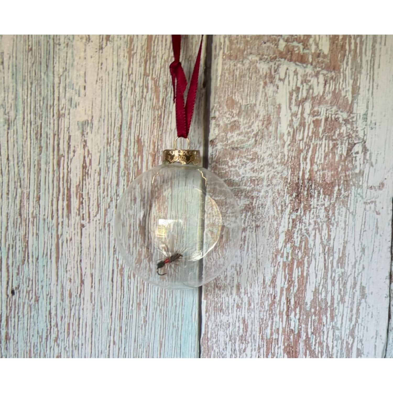 Capture the spirit of adventure with these unique glass ornaments, each containing a delicate fishing lure. Paired with a charming wicker basket, this set is a nod to the angler's timeless passion, blending rustic charm with festive elegance. A thoughtful gift or keepsake for outdoor enthusiasts.