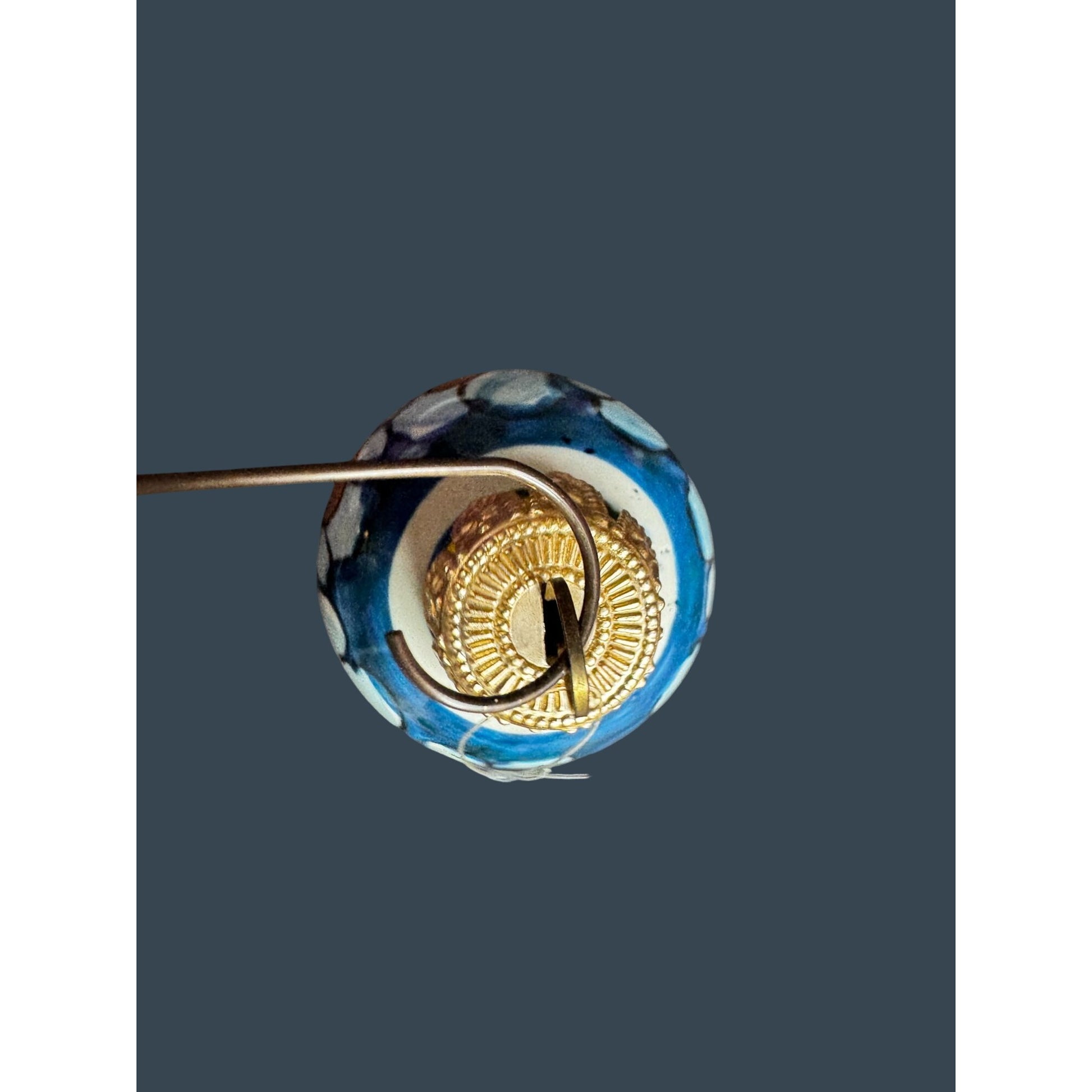 Hand Painted Porcelain Floral Ornament Blue White Orange Flowers 2 1/4"