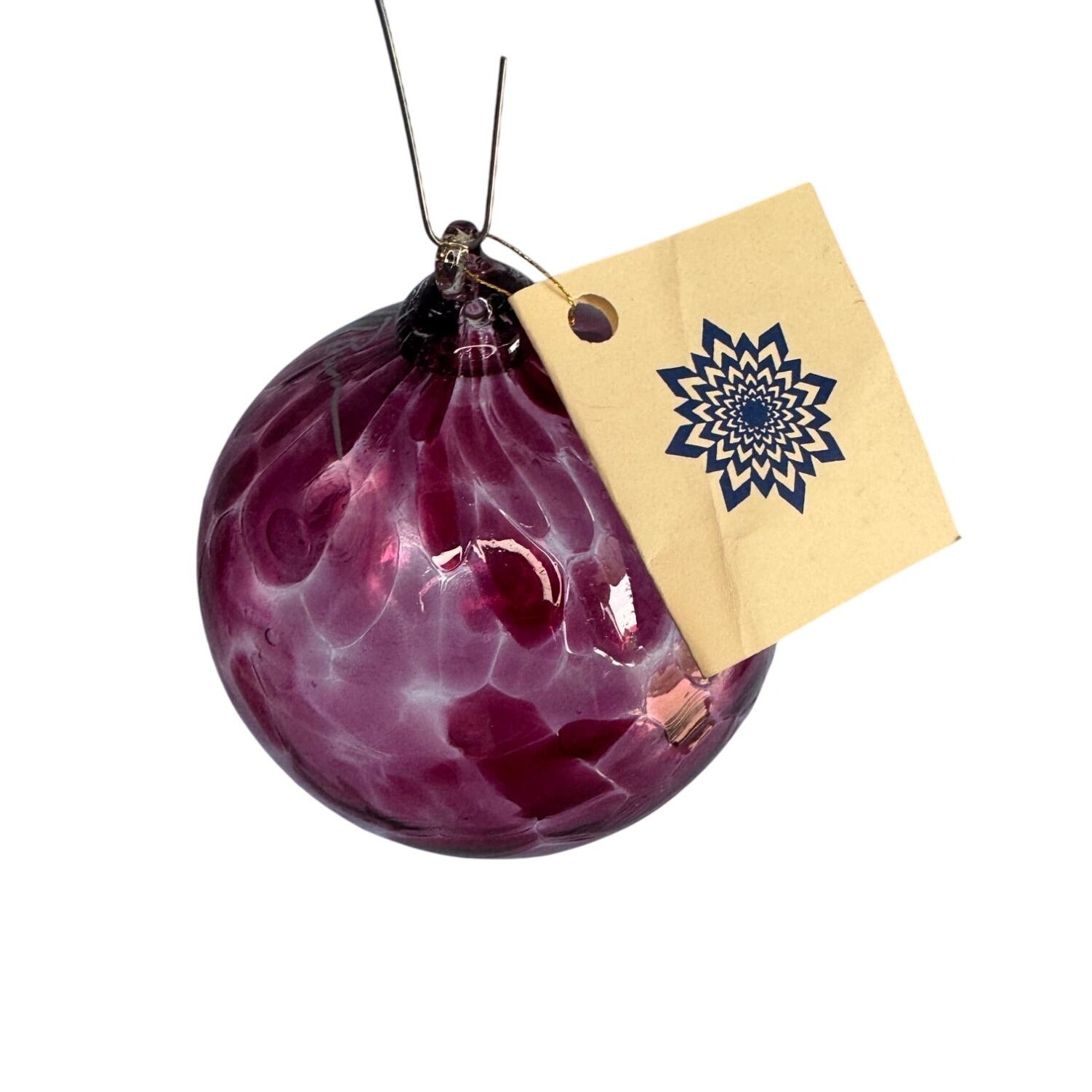 Handblown Spirit Ball Signed By Bruce Grauf 3.5" Purple Glass Ornament Made In USA