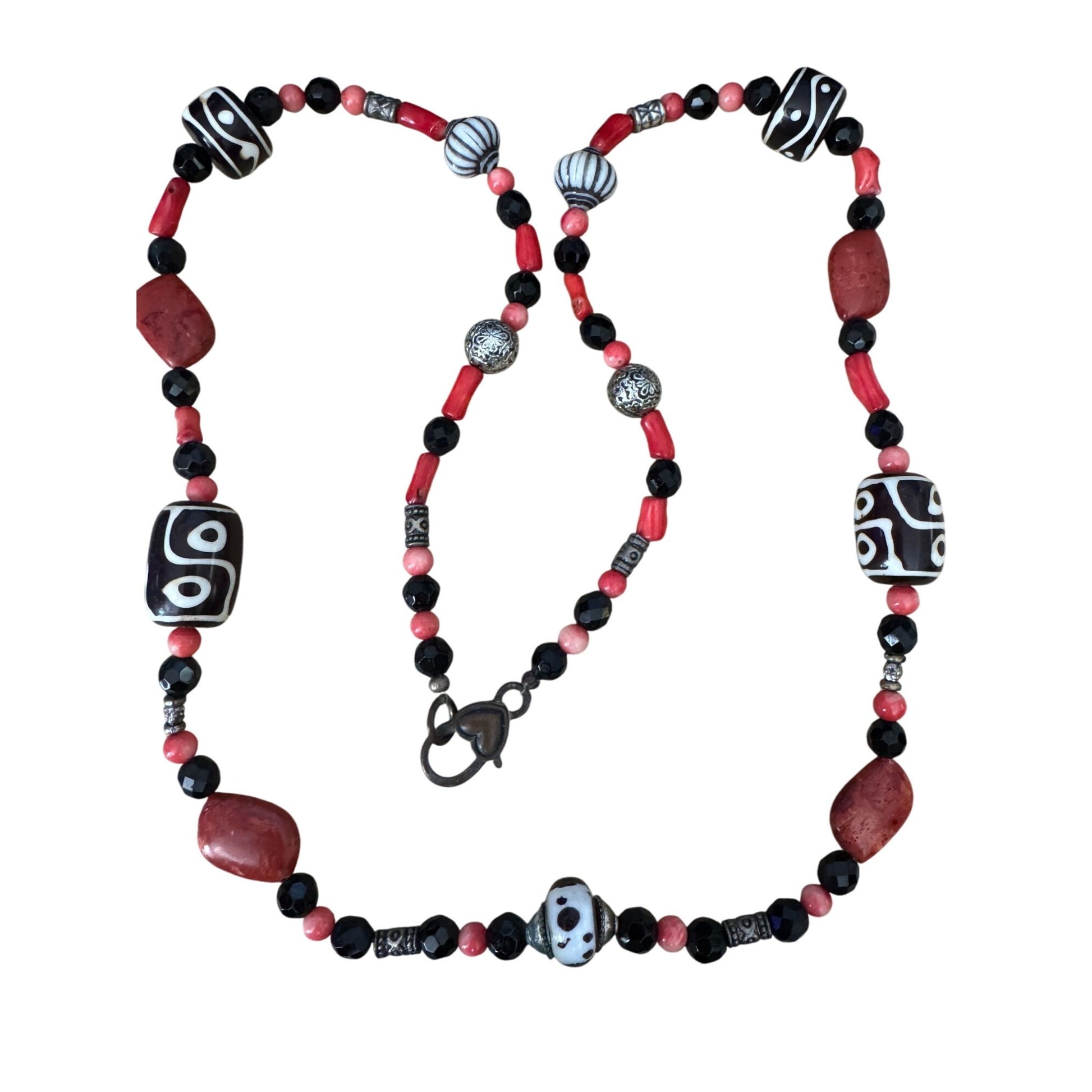 Handcrafted Tribal Tibetan 6 Eye Beads Murano Venetian Glass Beaded Necklace 30"