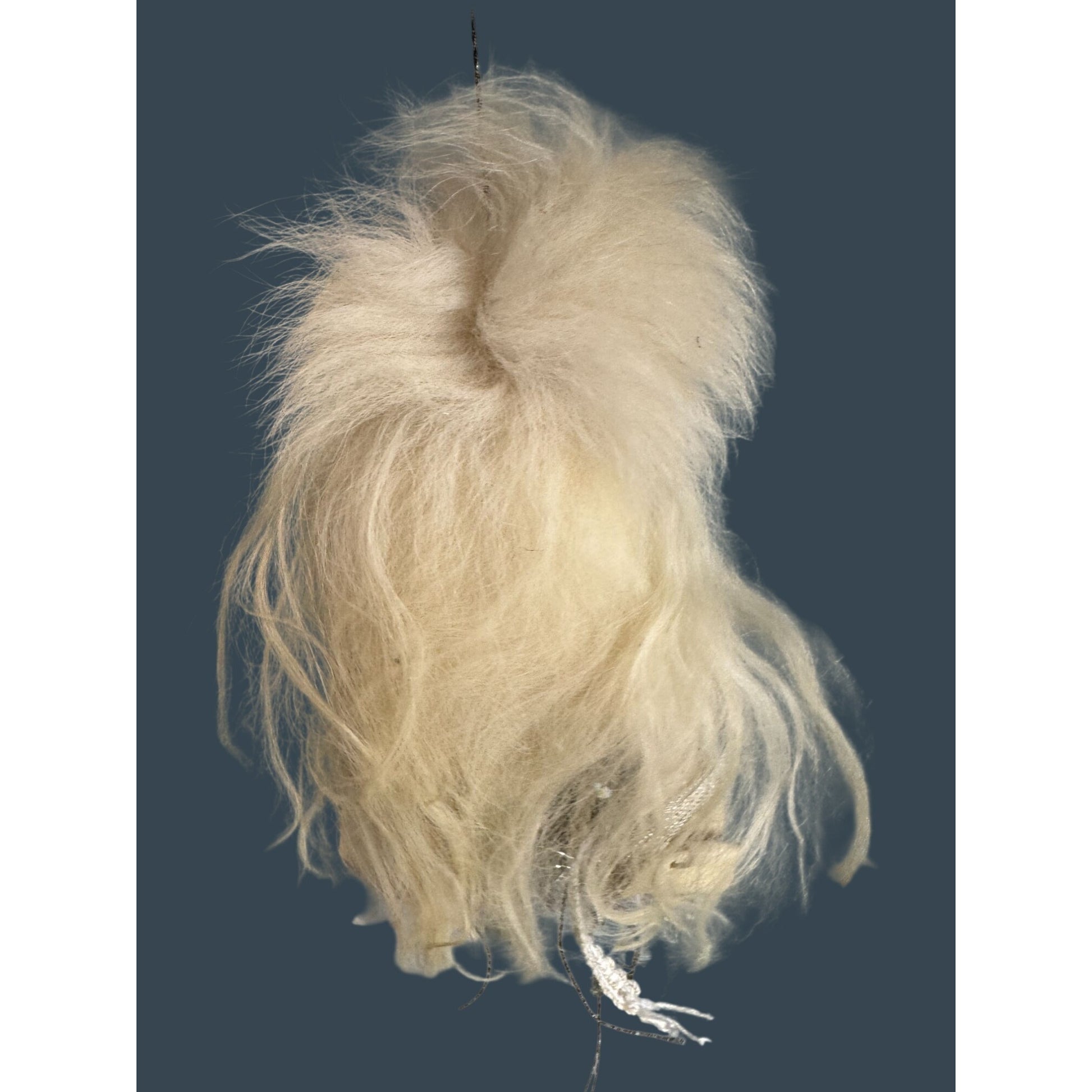 material: sculpted resin face, glass eyes, spun cotton details, metal hanger/cap