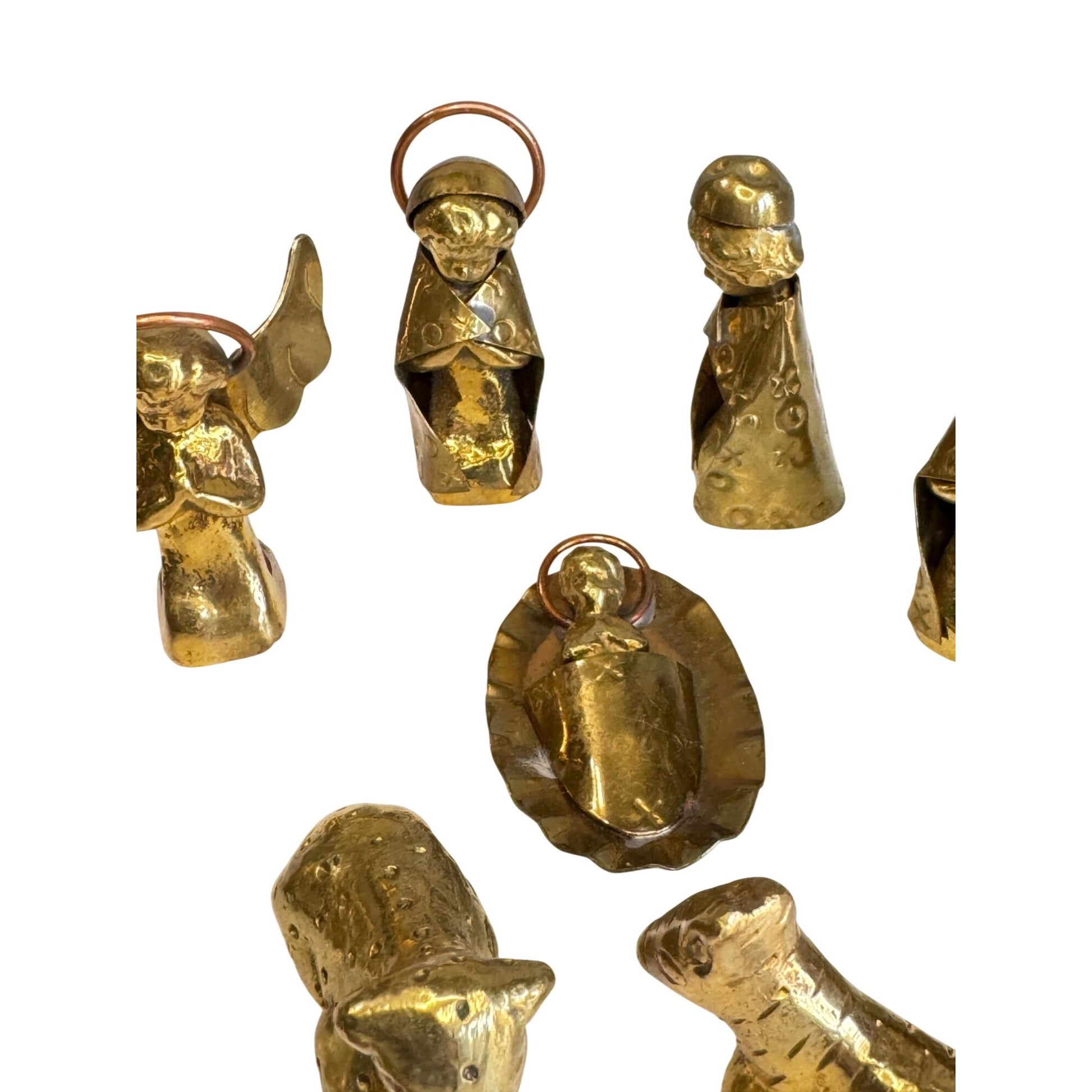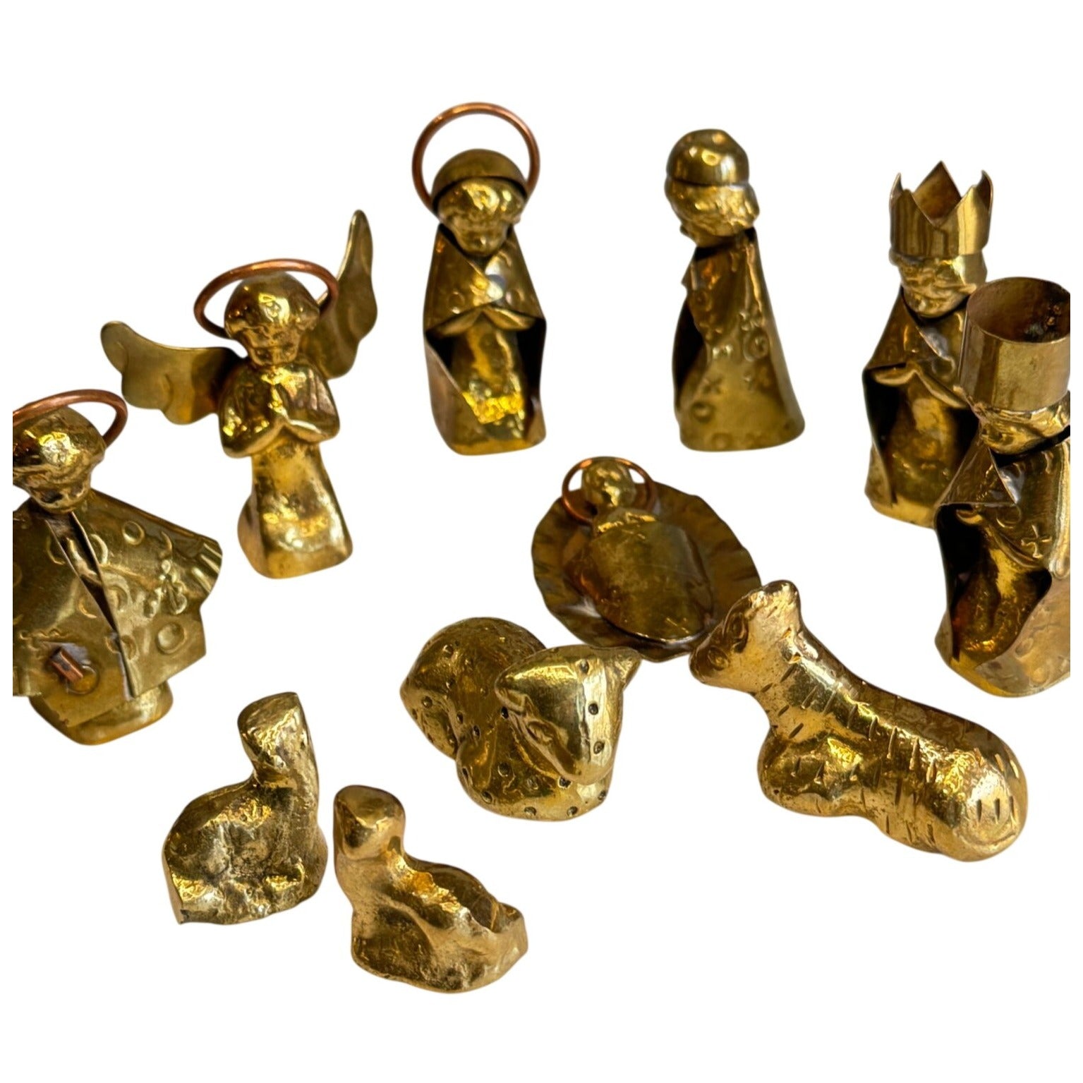 Mexico Folk Art Mini Nativity Set 10 Pc Brass Copper Artisan Made 2 1/2"