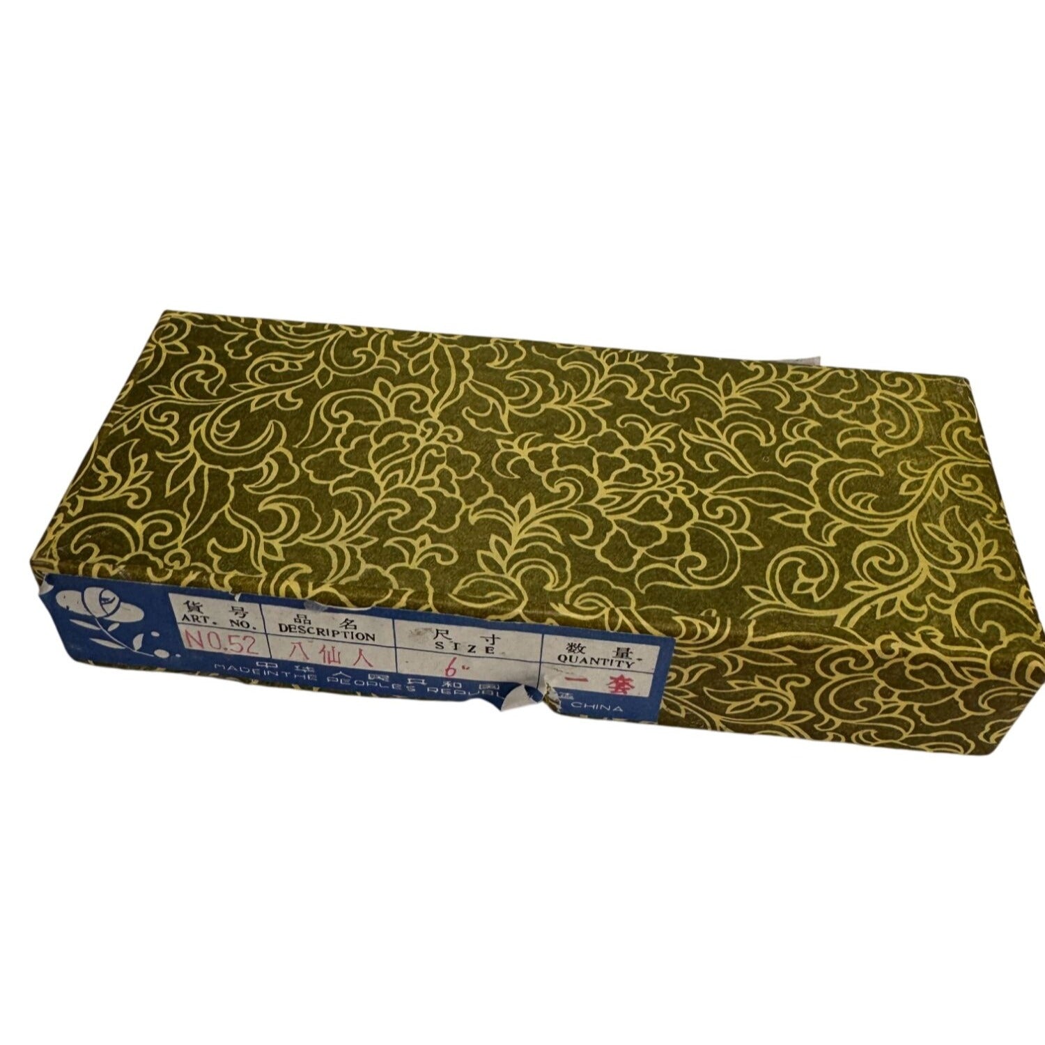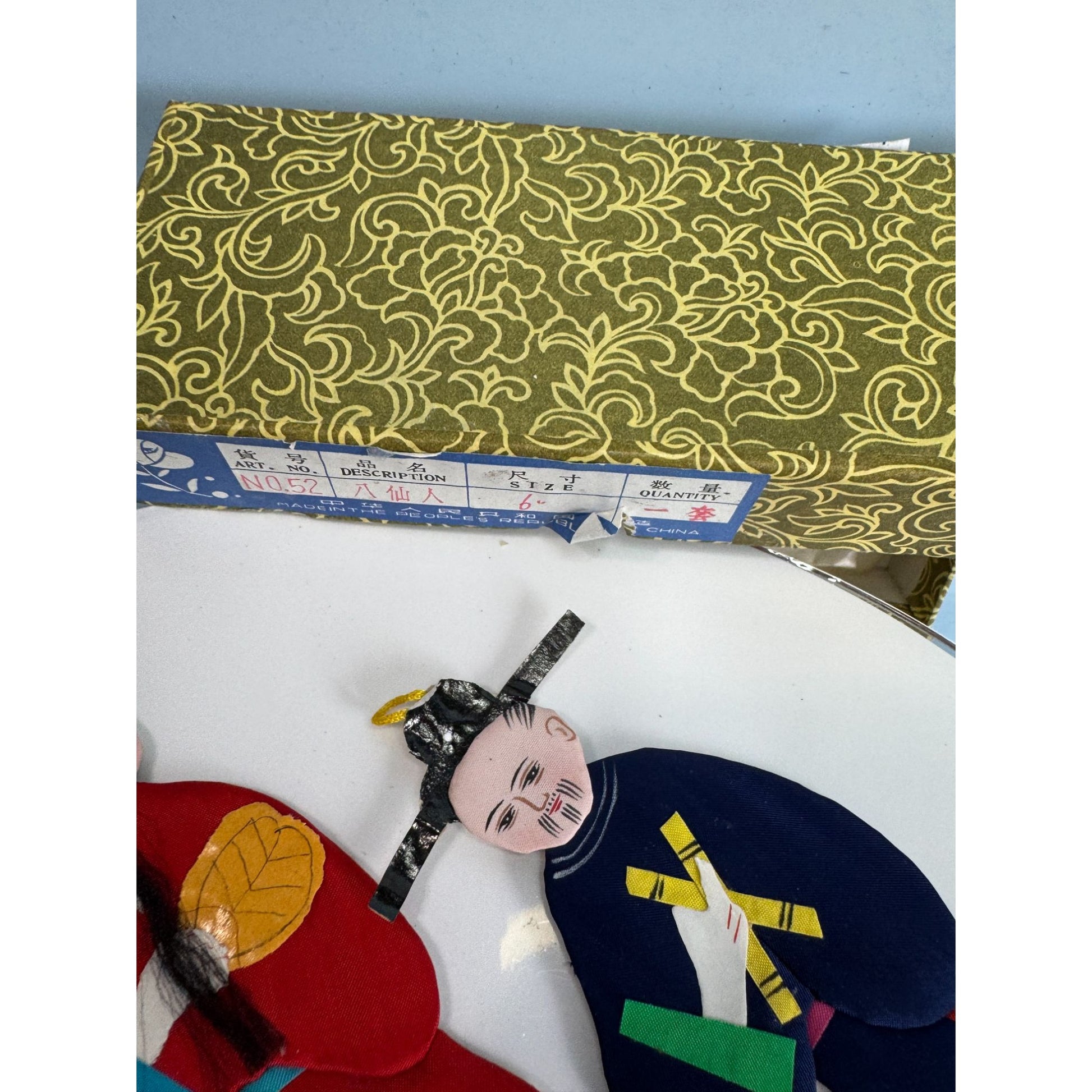 Set Of 8 Chinese Silk & Cardboard Immortal Ornaments Multicolor 5.5" With Box