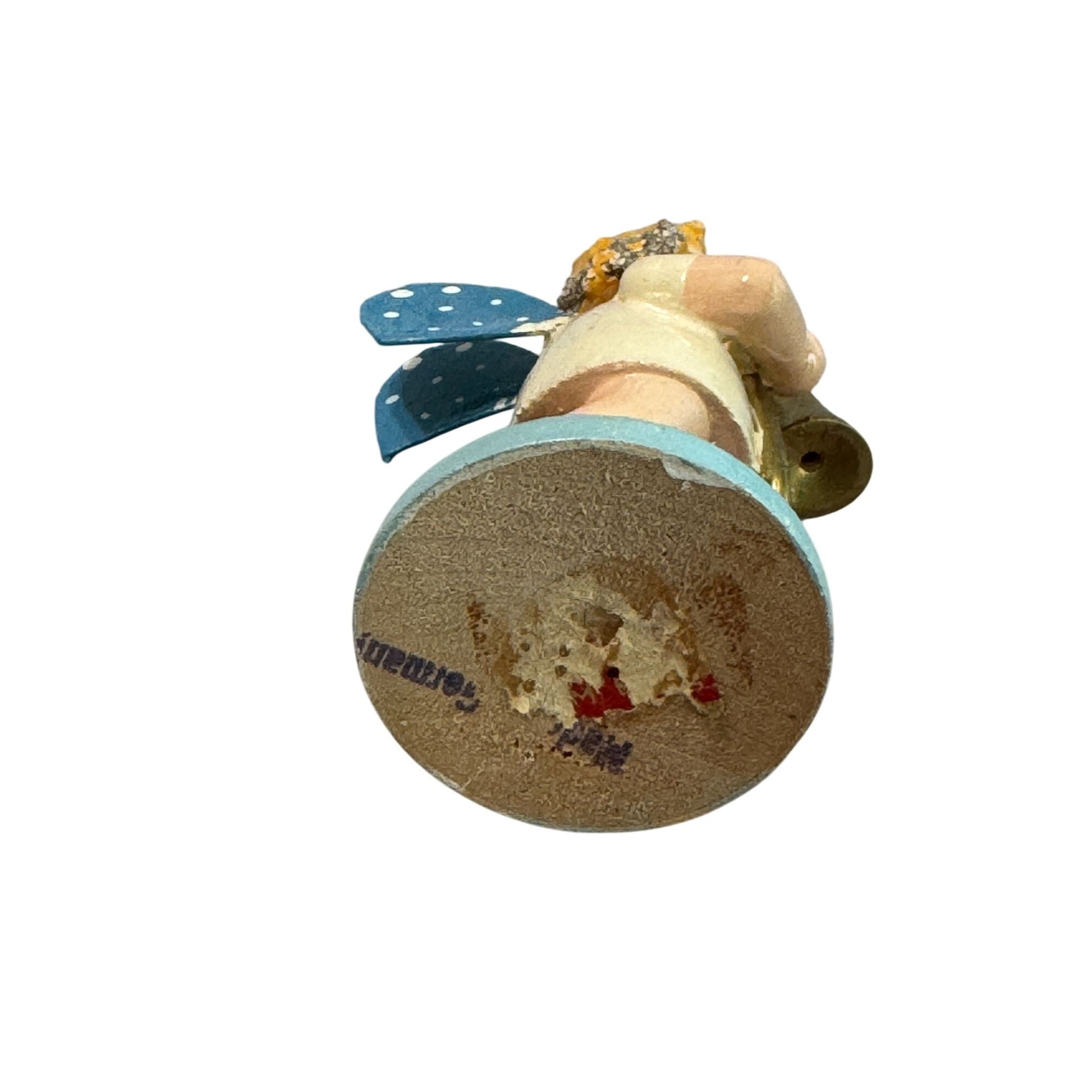 Steinbach Wooden Angel Ornament Cherub Germany Blue Handcrafted Vintage 2.5"