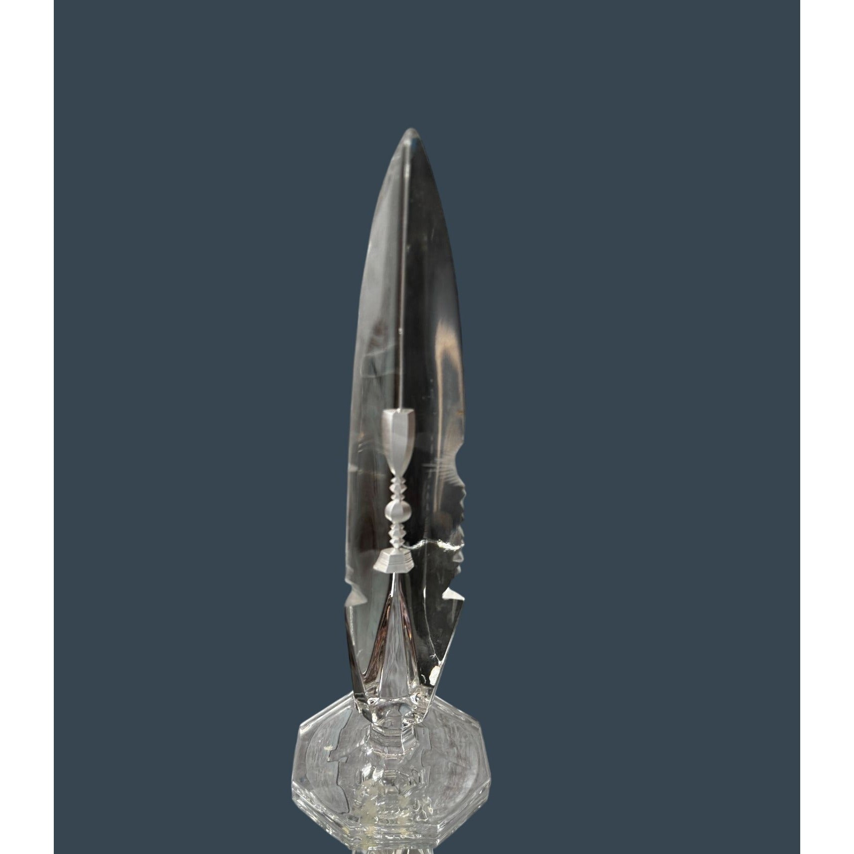 Swedish Optical Crystal Abstract Icicle Sculpture Multi-View Etched 8 1/4"