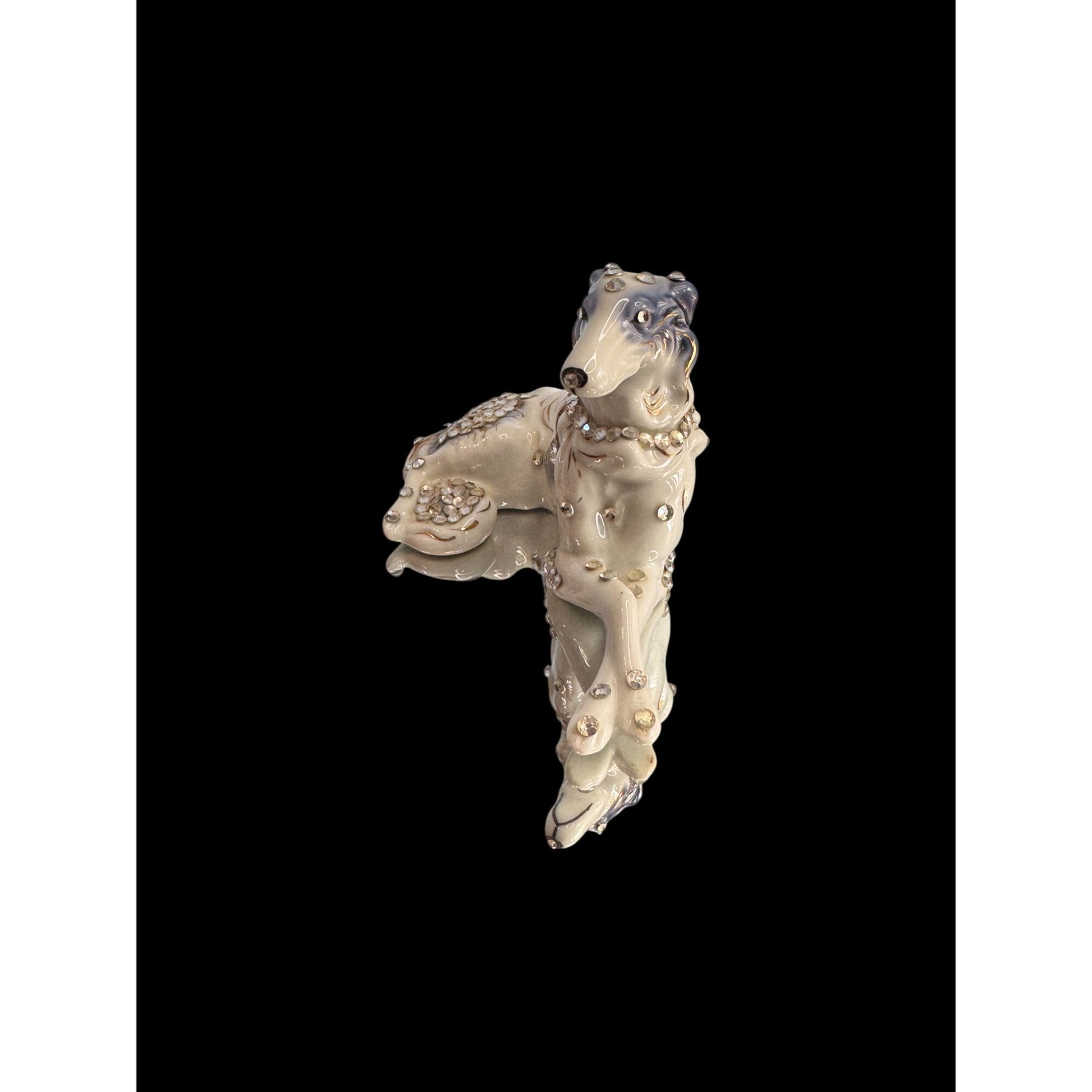 Vintage Art-Shaw Japan Borzoi Dog Figurine Rhinestone Glam Mid Century Ceramic