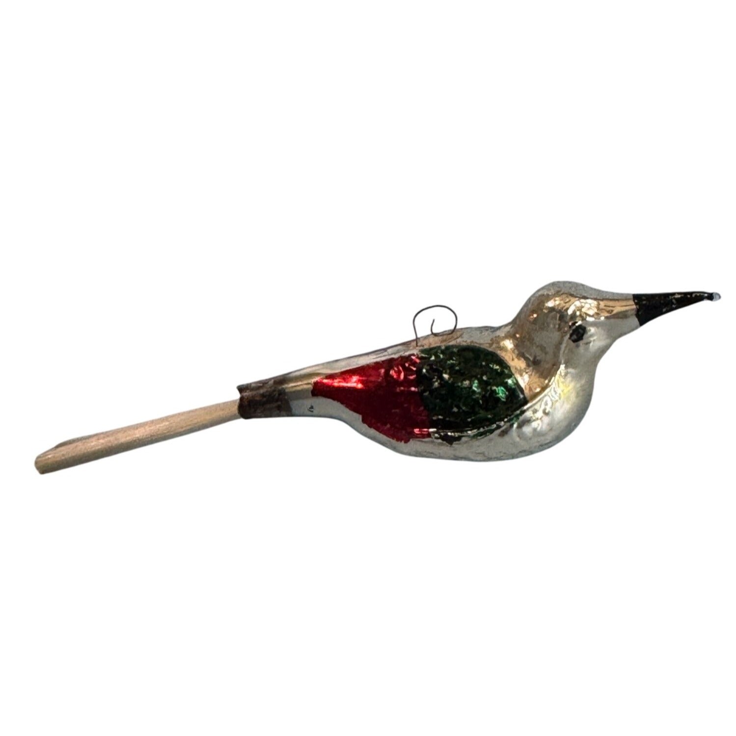 Vintage Blown Mercury Glass Bird Ornament Red Green Silver 4.5" w/tail Germany