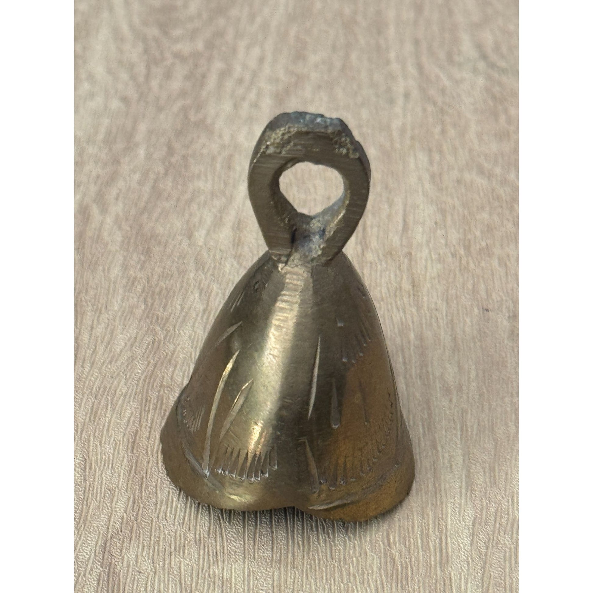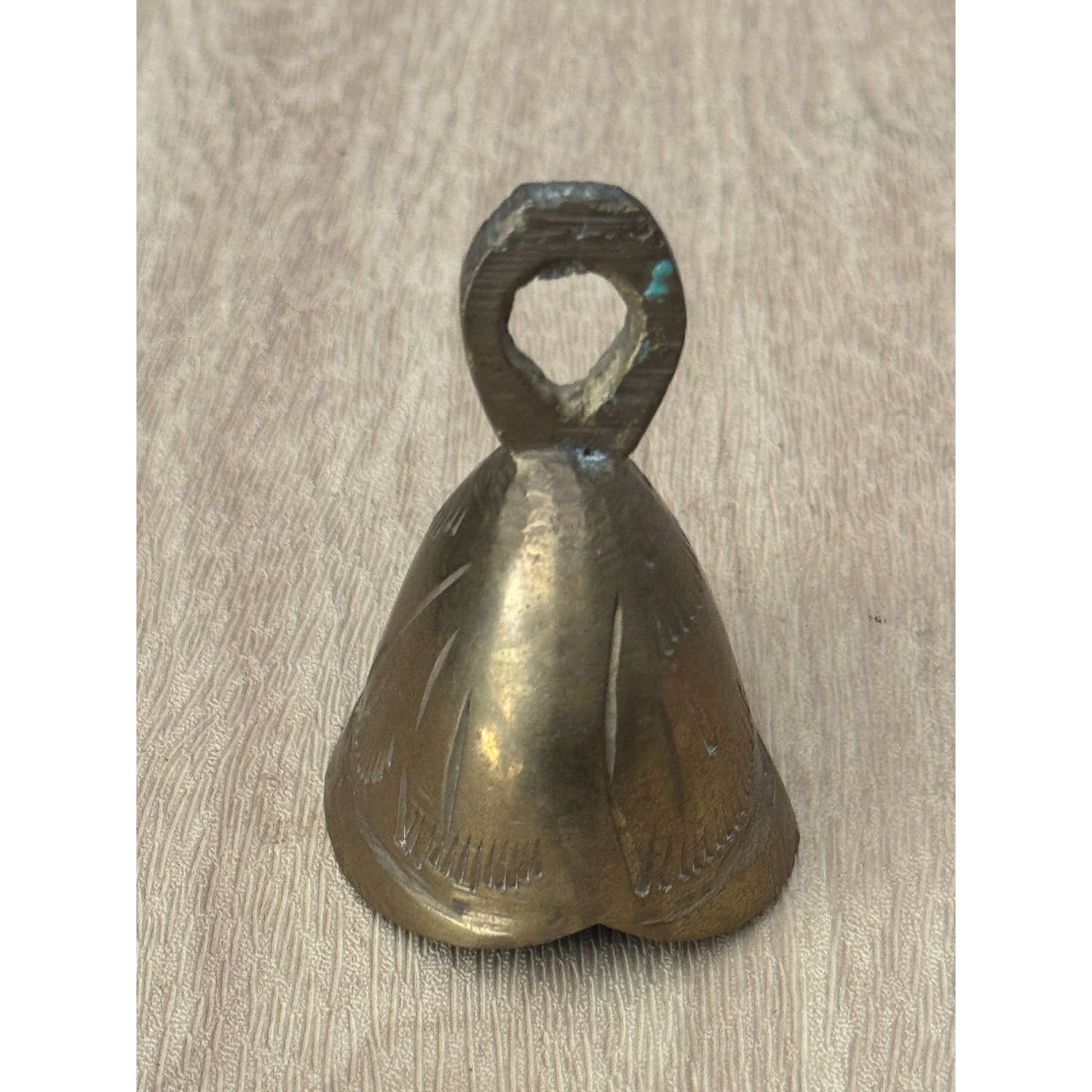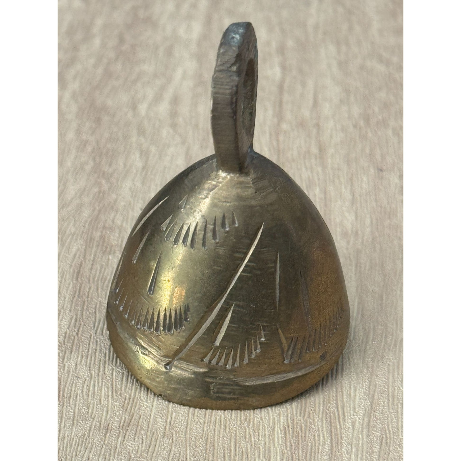 Compact decorative bell with intricate etchings, ideal as a collectible or for subtle sound accents. A timeless piece with cultural roots in India.