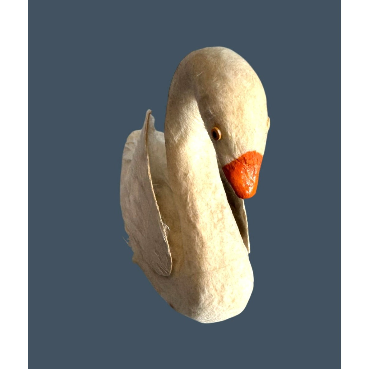 style: vintage holiday / putz / miniature display figure (1940s–1960s), reminiscent of 1920s German/USSR spun cotton swans