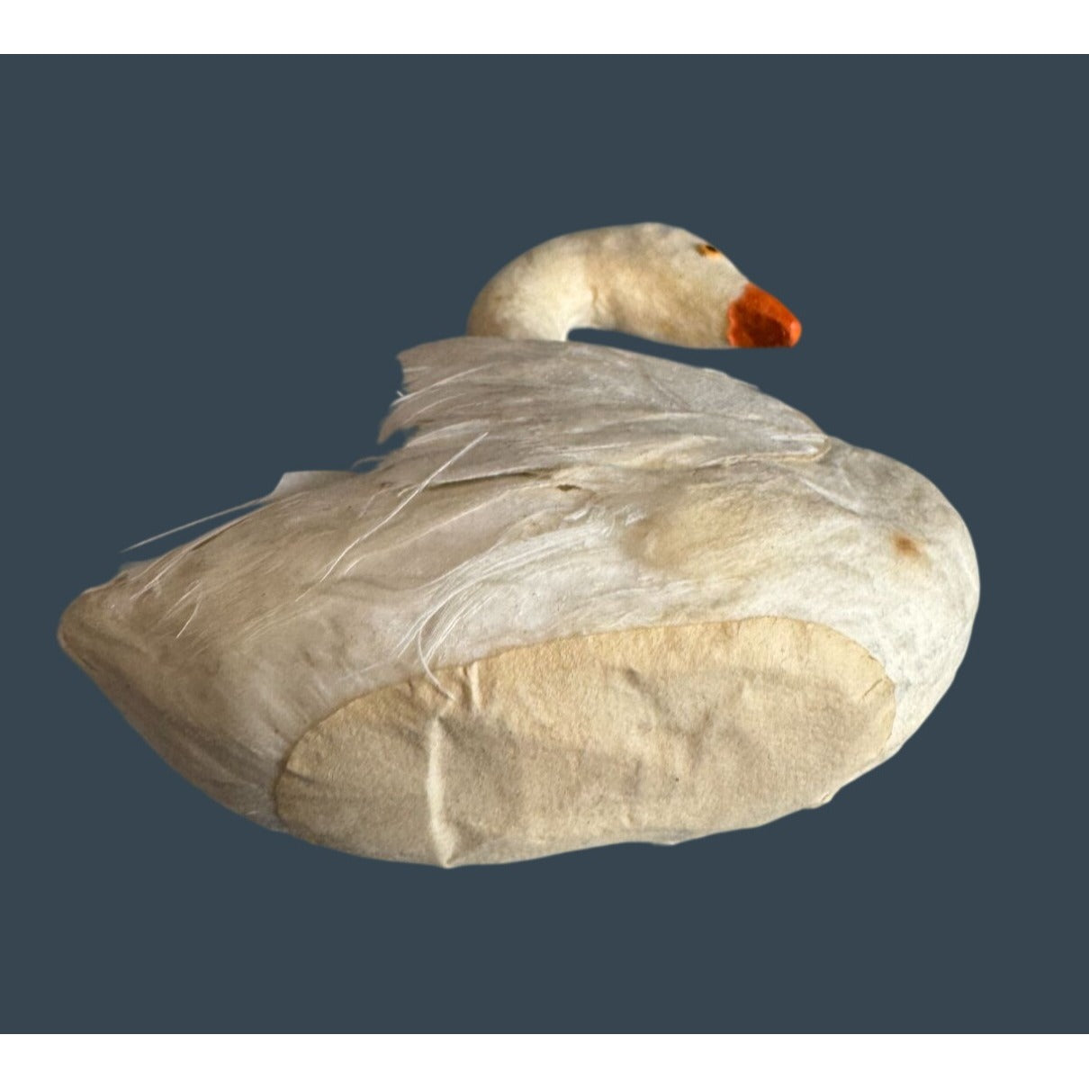 Vintage Feather Swan Figurine White Cotton Batting Styrofoam Body 3.25 Inch