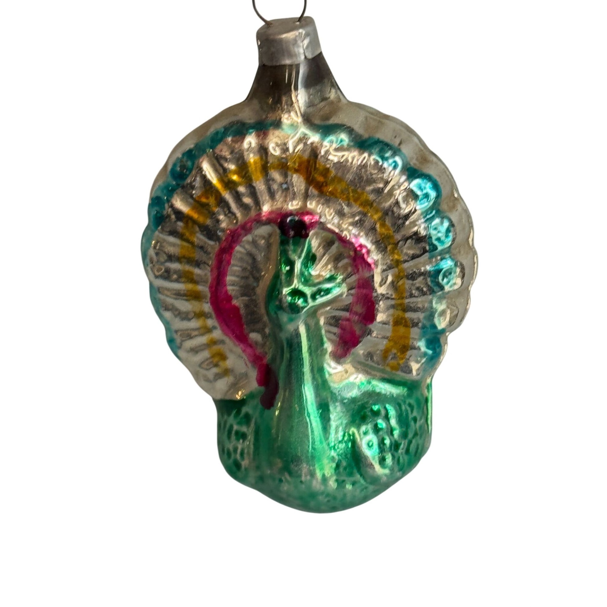 Vintage German Molded Peacock Figural Glass Christmas Ornament 2 1/3" x 1 3/4"