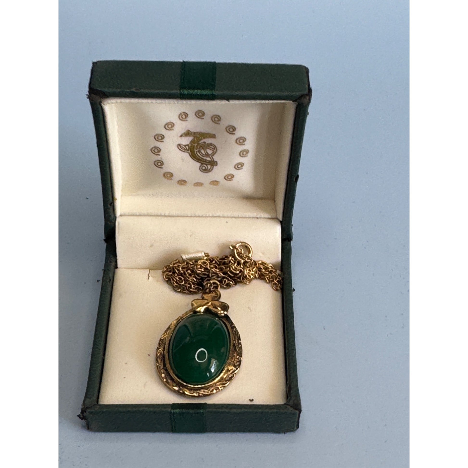 Vintage Jade Oval Pendant & Clover DetailGolplated Chain Boxed