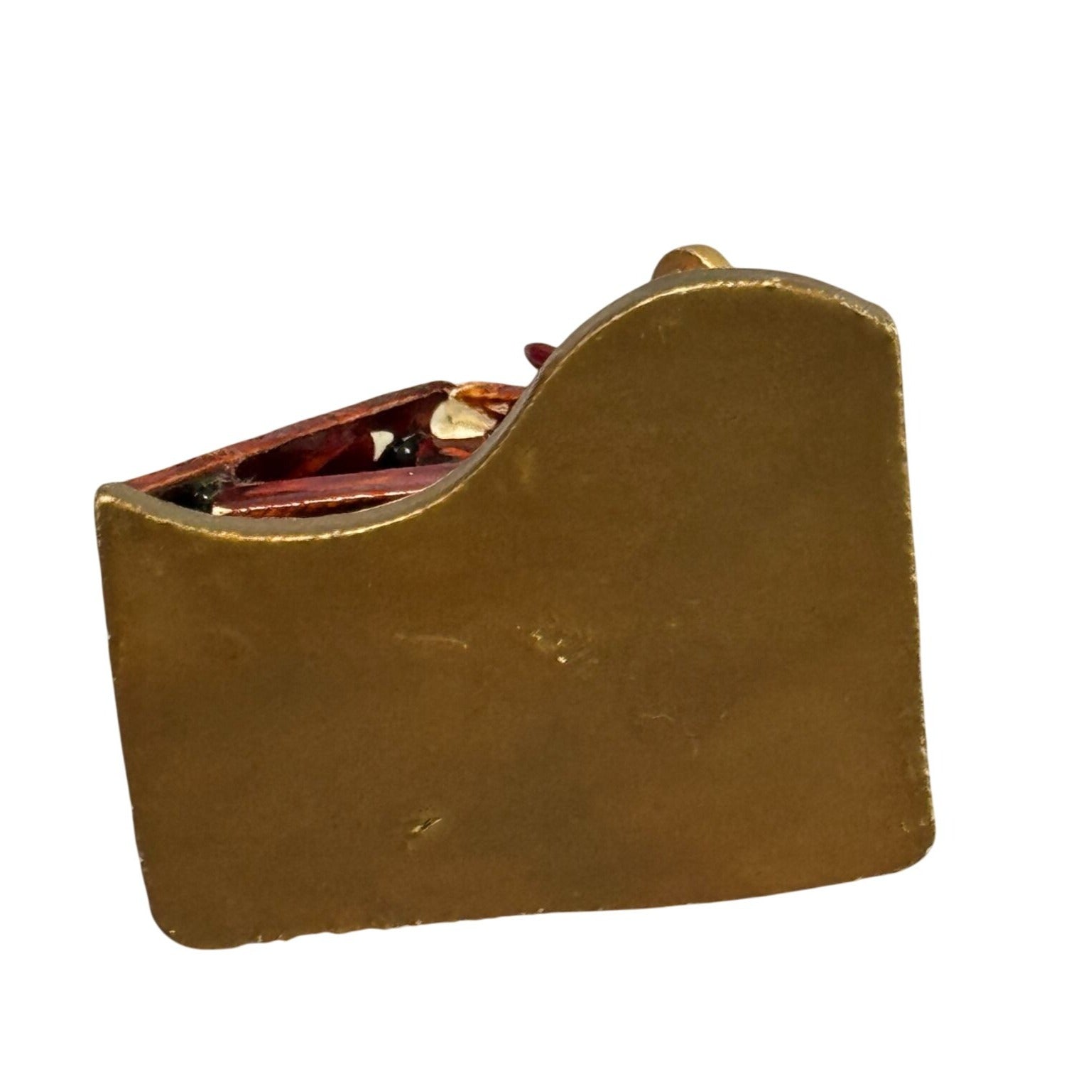 This vintage Christmas nativity figurine from Japan, dating back to the 1950s–1960s, features a unique design with a wooden-style stable, a white angel figure, and two adorable pink deer. Its distinct color palette and gold-painted base make it a wonderful collector's item or festive display piece. The craftsmanship reflects mid-century Japanese artistry, and the piece remains a charming nostalgic symbol of the season. Very rare post WWII Japan Novelty Christmas Figure.