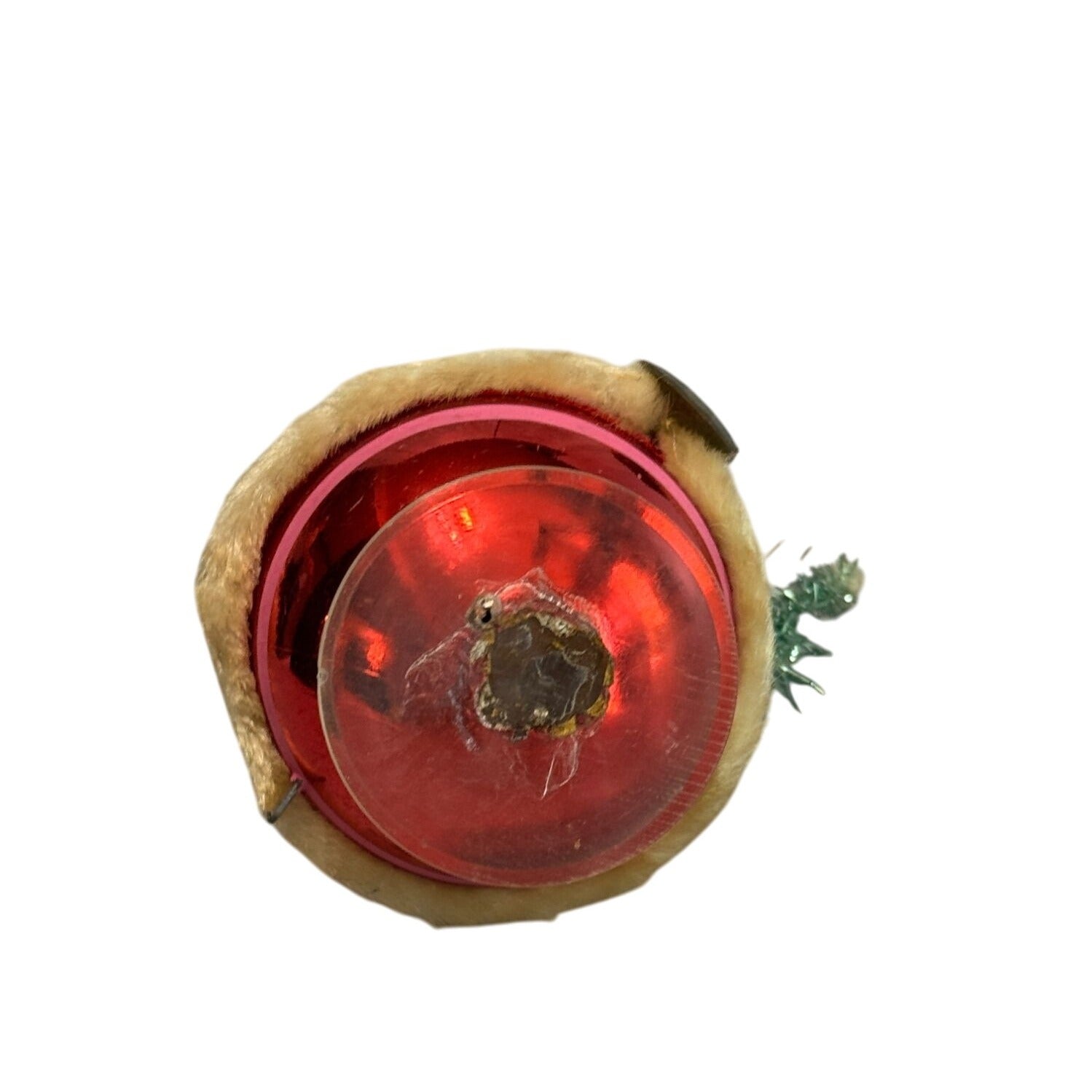 Minor wear and small scuffs on plastic base and ornament surface. Chenille and felt intact, with light aging of materials. Bottom diameter ≈ 2 inches.