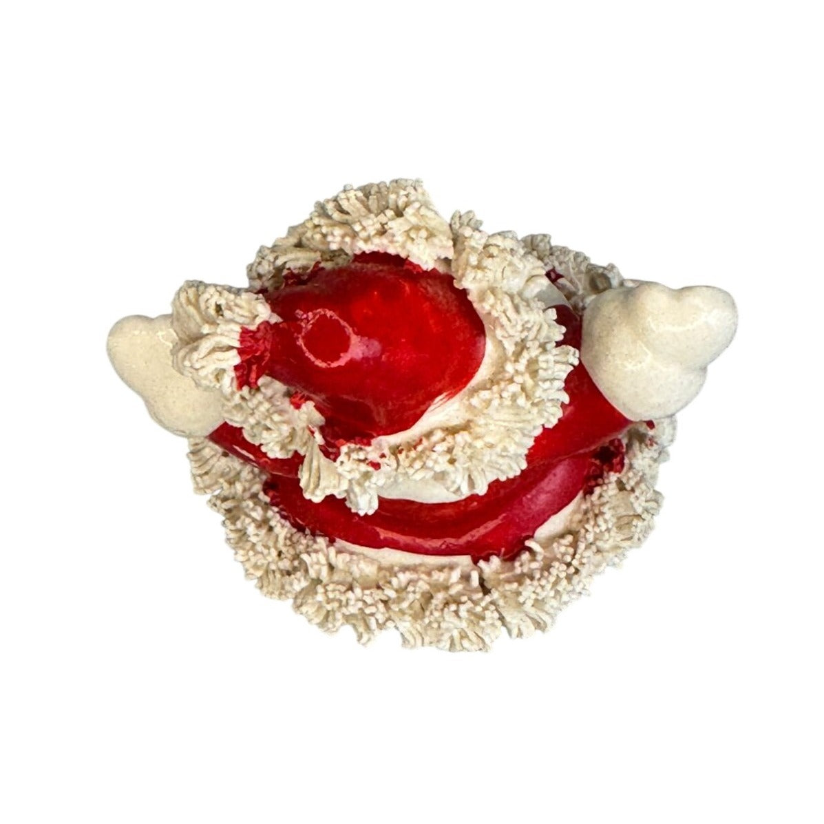 This is a vintage Napco (National Pottery Company) Santa with classic 1950s spaghetti-trim “frosting” — and it’s a salt shaker (hole on the bottom). Perfect for a mid-century Christmas kitchen display, holiday table, or MCM collection.