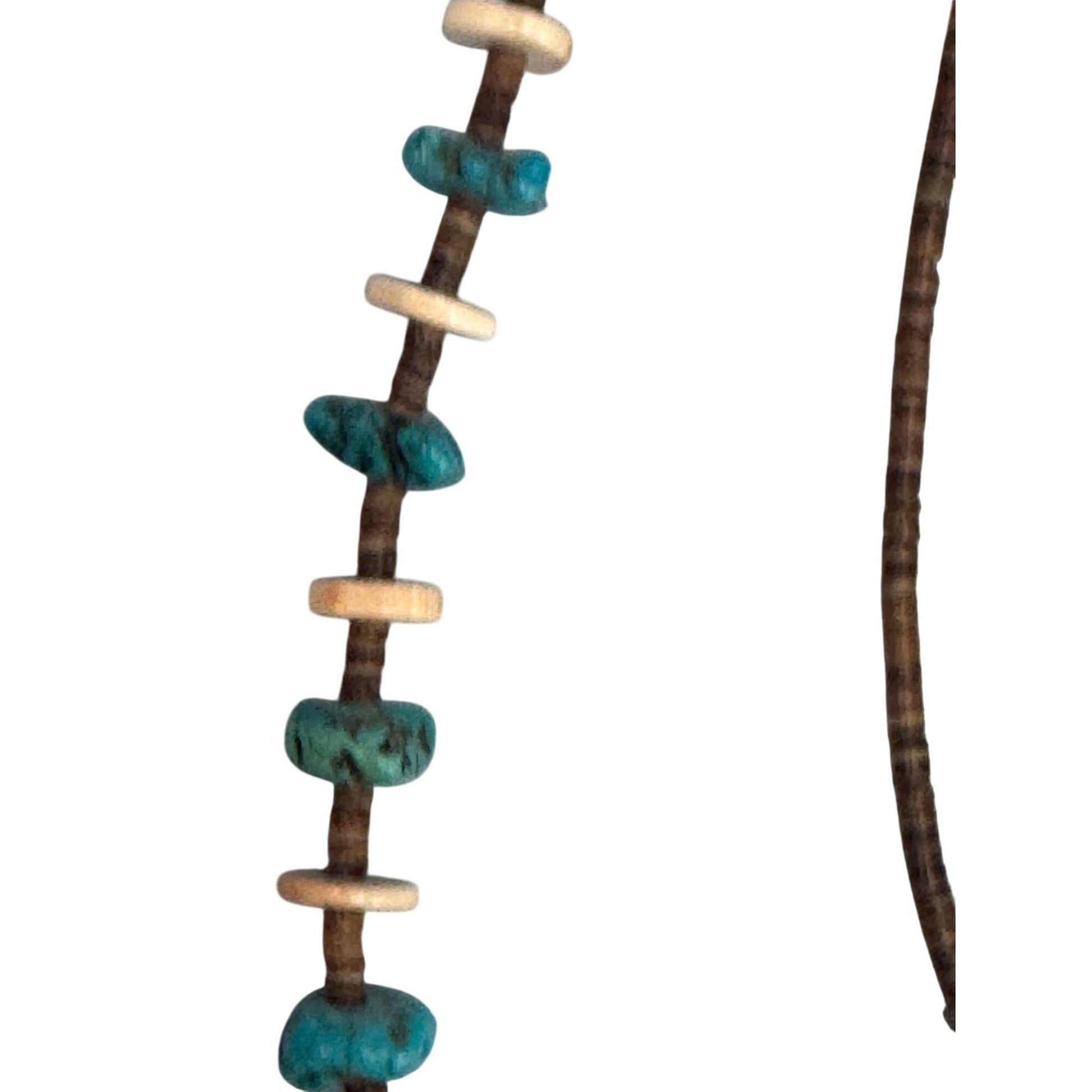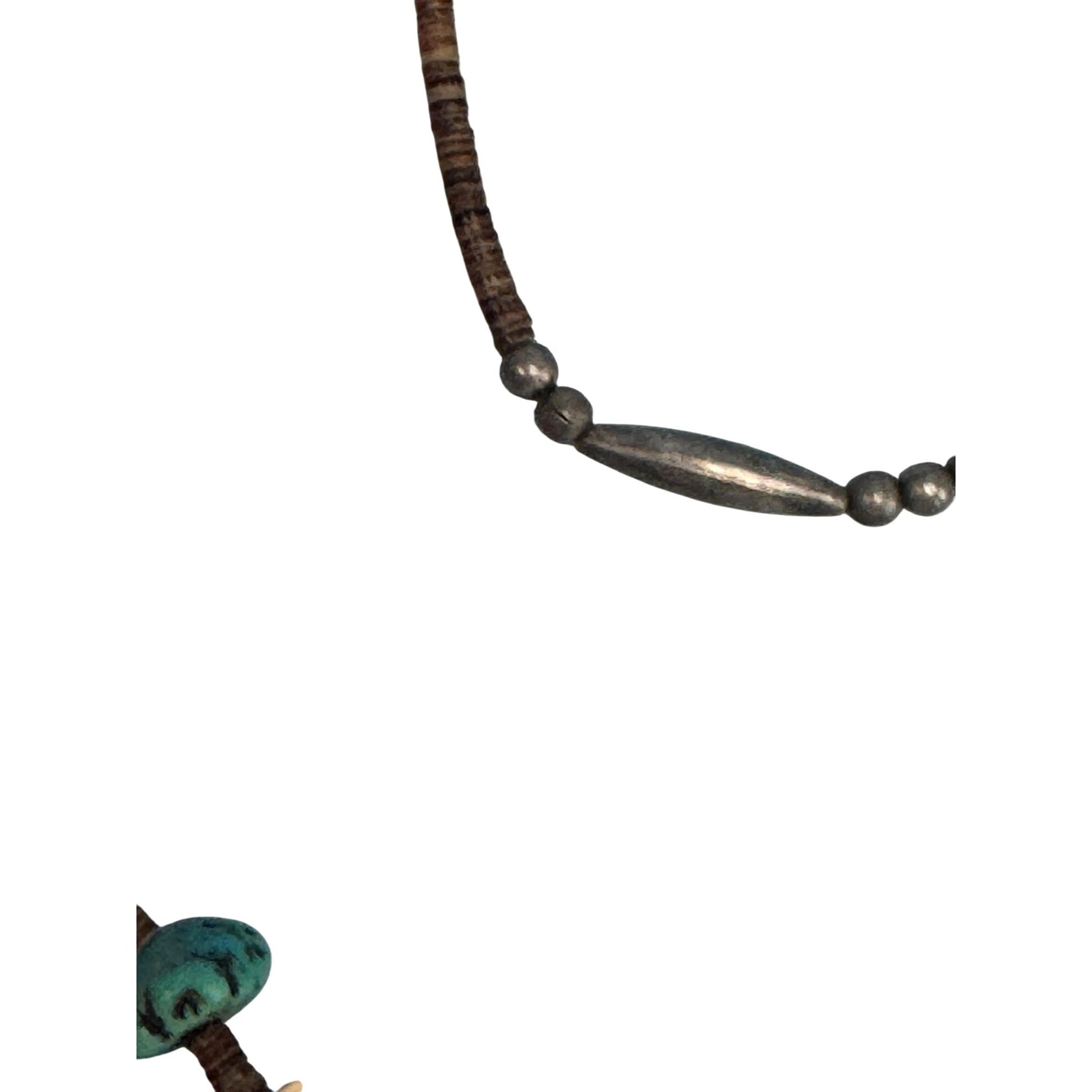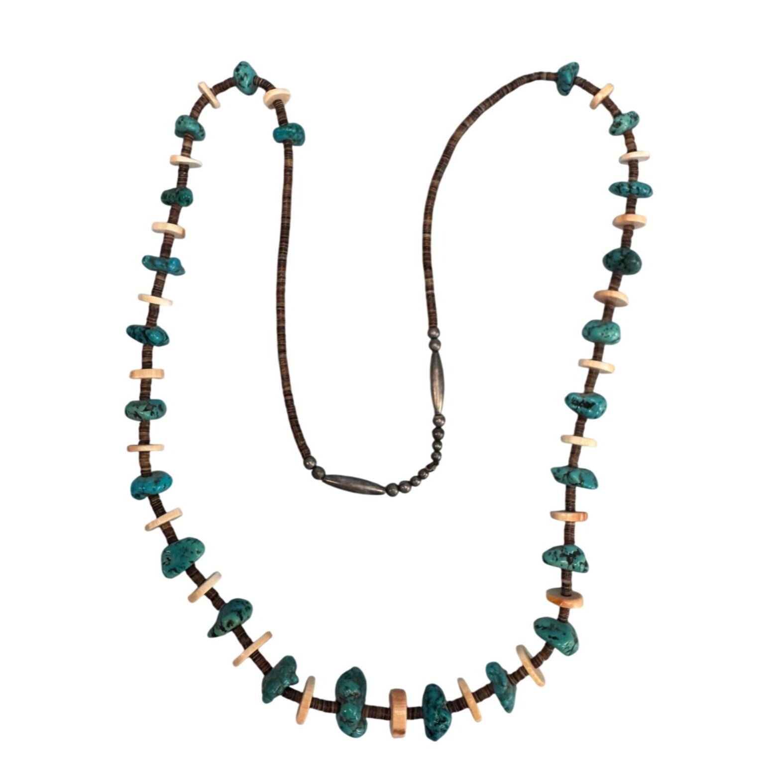Vintage Southwestern Turquoise Nugget Shell Heishi Bead Necklace 30" Sterling