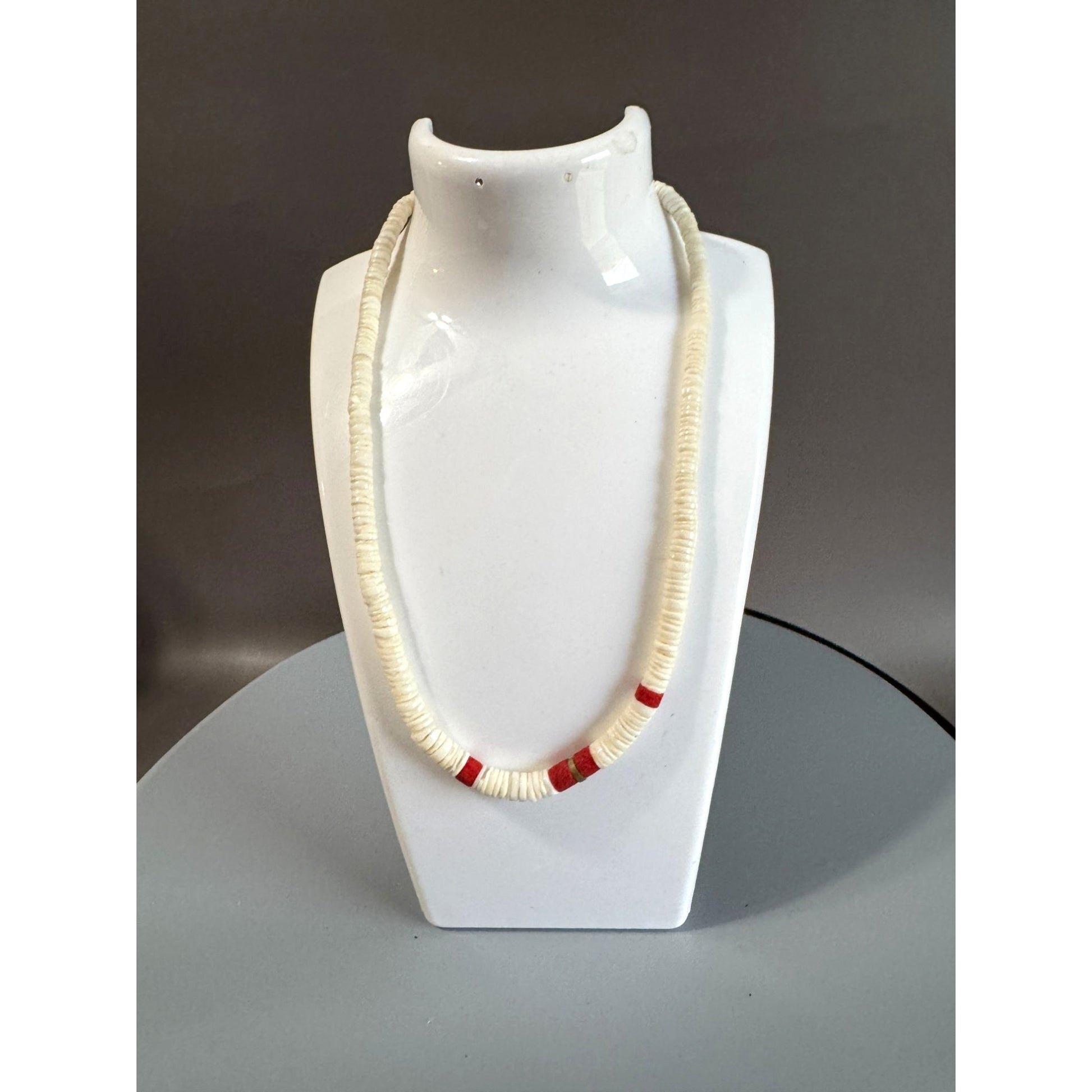 Vintage Spiny Oyster Shell Heishi Necklace Red Accents 16 Inches Southwestern