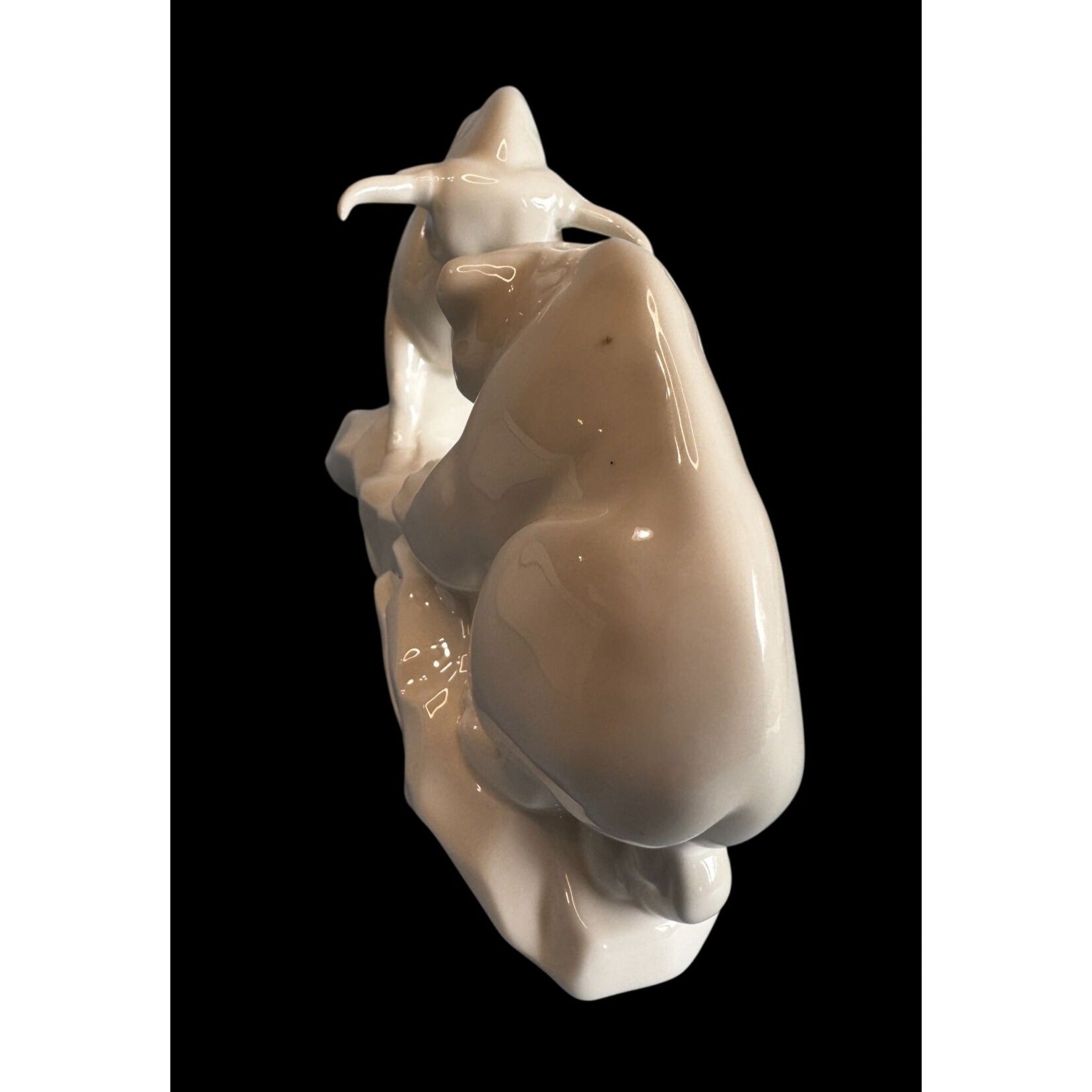legant Wedgwood bone china sculpture depicting the classic bull and bear in a head-to-head stance, representing the timeless market battle. Crafted in England in 1999, this piece features a glossy ivory glaze and sculptural realism. A striking decorative or executive gift symbolizing financial strength and resilience.